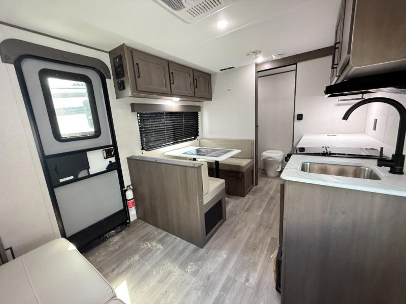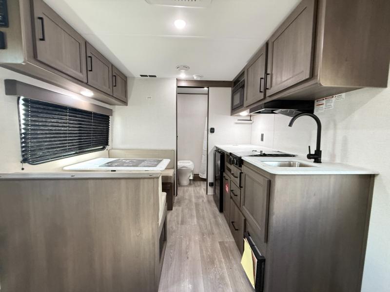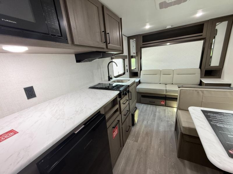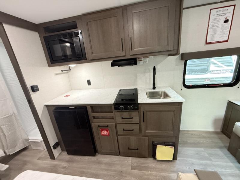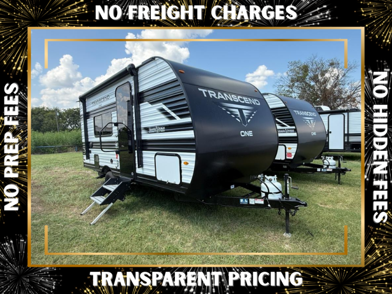 With any Transcend One travel trailer by Grand Design, you will enjoy lightweight towing thanks to their single-axle. There are many interior comforts to make camping easier than ever, such as recessed lighting, residential countertops, and a 6' 6" interior height. Each model is constructed with a heated and enclosed underbelly with suspended tanks, a moisture barrier floor enclosure, and Thermofoil over the roof and front cap for added protection. And a JBL sound system will let you listen to tunes as you visit under the power awning with a Fusion light!