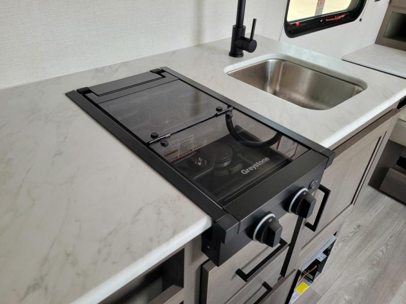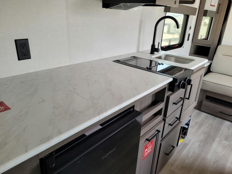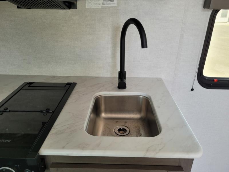 With any Transcend One travel trailer by Grand Design, you will enjoy lightweight towing thanks to their single-axle. There are many interior comforts to make camping easier than ever, such as recessed lighting, residential countertops, and a 6' 6" interior height. Each model is constructed with a heated and enclosed underbelly with suspended tanks, a moisture barrier floor enclosure, and Thermofoil over the roof and front cap for added protection. And a JBL sound system will let you listen to tunes as you visit under the power awning with a Fusion light!
