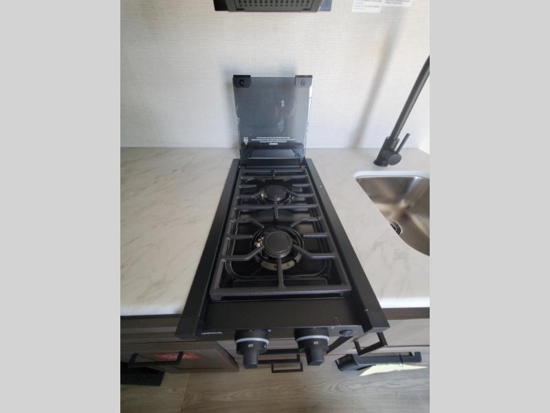 With any Transcend One travel trailer by Grand Design, you will enjoy lightweight towing thanks to their single-axle. There are many interior comforts to make camping easier than ever, such as recessed lighting, residential countertops, and a 6' 6" interior height. Each model is constructed with a heated and enclosed underbelly with suspended tanks, a moisture barrier floor enclosure, and Thermofoil over the roof and front cap for added protection. And a JBL sound system will let you listen to tunes as you visit under the power awning with a Fusion light!