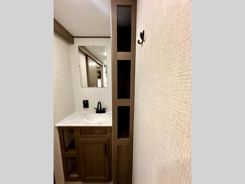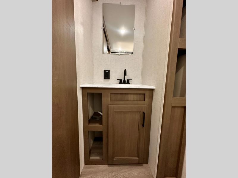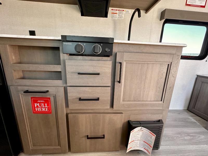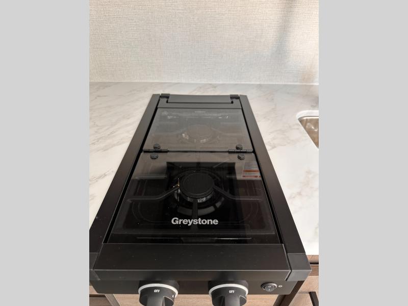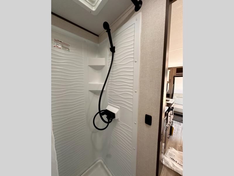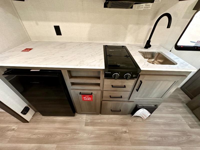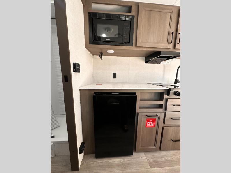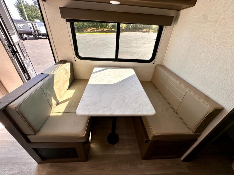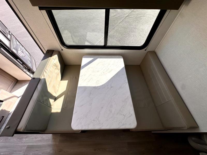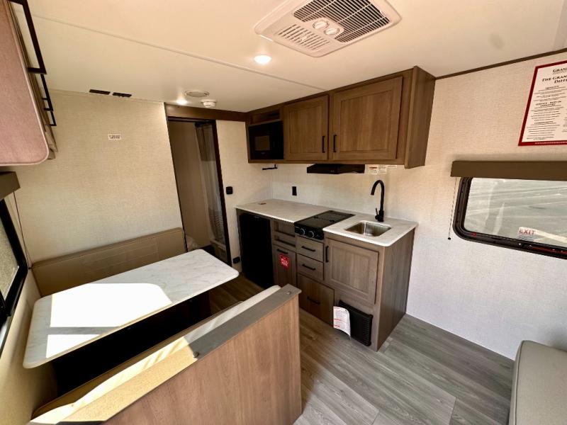 With any Transcend One travel trailer by Grand Design, you will enjoy lightweight towing thanks to their single-axle. There are many interior comforts to make camping easier than ever, such as recessed lighting, residential countertops, and a 6' 6" interior height. Each model is constructed with a heated and enclosed underbelly with suspended tanks, a moisture barrier floor enclosure, and Thermofoil over the roof and front cap for added protection. And a JBL sound system will let you listen to tunes as you visit under the power awning with a Fusion light!