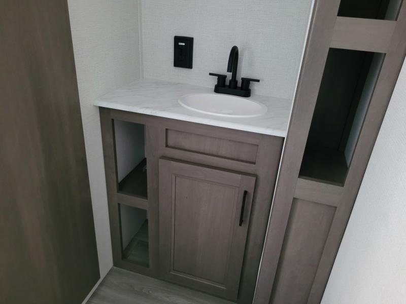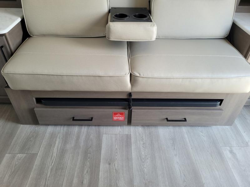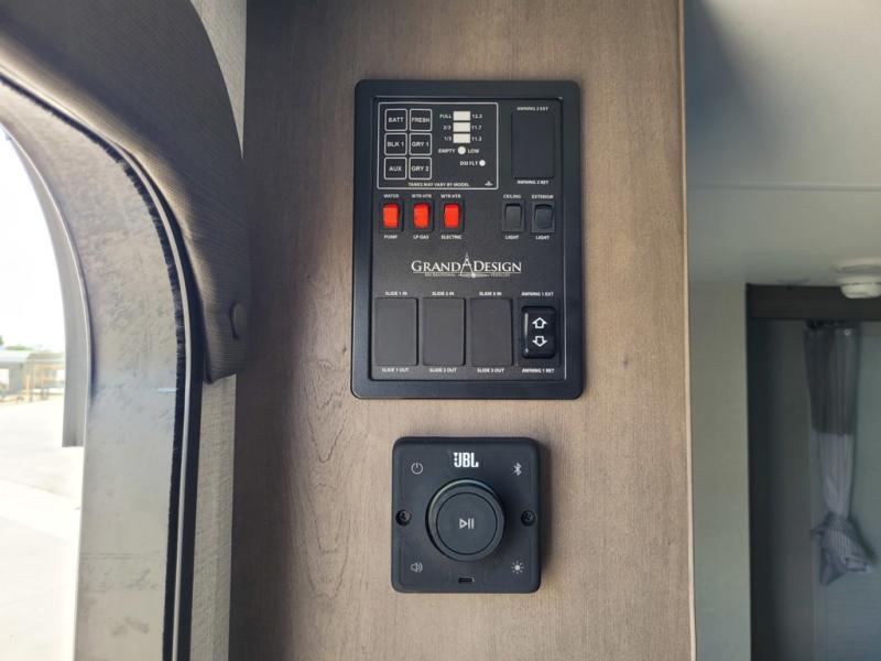 With any Transcend One travel trailer by Grand Design, you will enjoy lightweight towing thanks to their single-axle. There are many interior comforts to make camping easier than ever, such as recessed lighting, residential countertops, and a 6' 6" interior height. Each model is constructed with a heated and enclosed underbelly with suspended tanks, a moisture barrier floor enclosure, and Thermofoil over the roof and front cap for added protection. And a JBL sound system will let you listen to tunes as you visit under the power awning with a Fusion light!