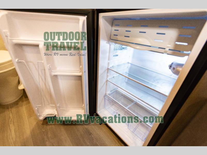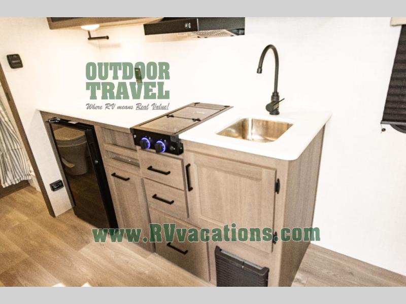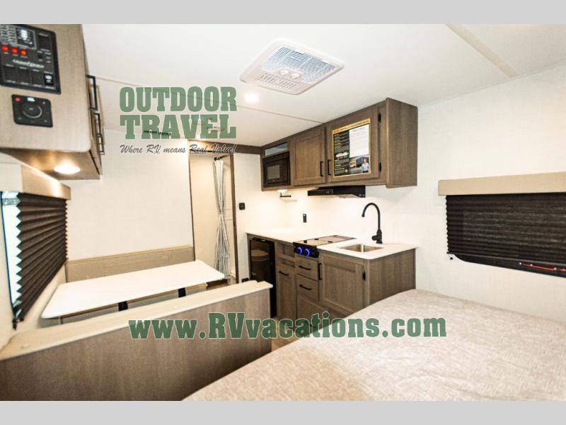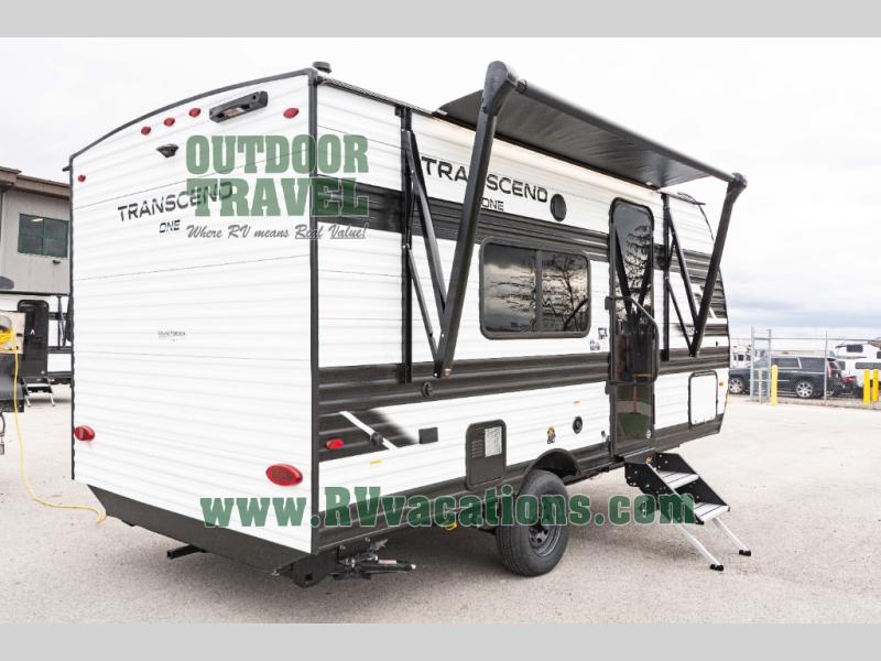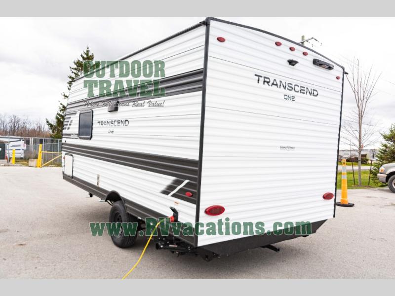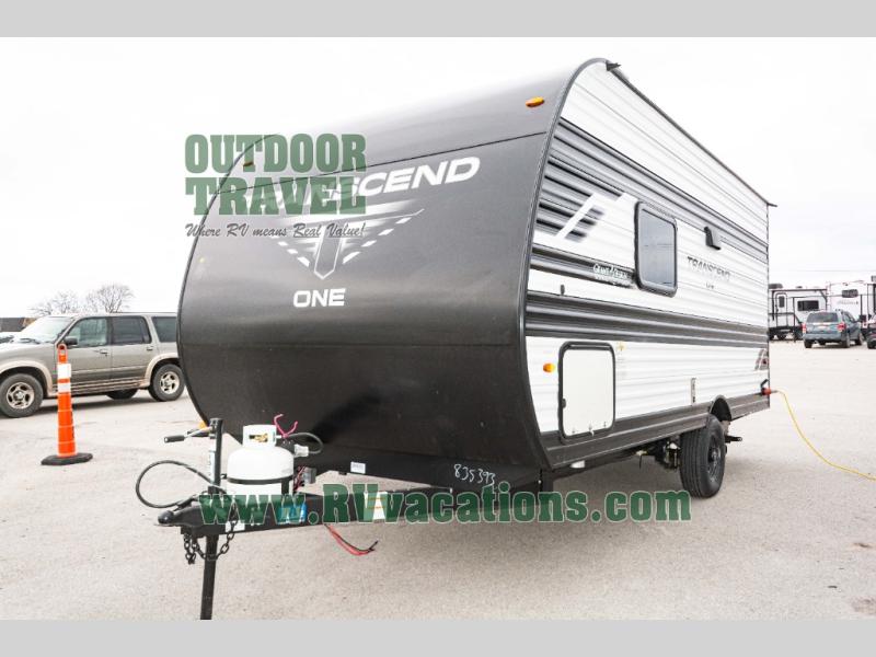 With any Transcend One travel trailer by Grand Design, you will enjoy lightweight towing thanks to their single-axle. There are many interior comforts to make camping easier than ever, such as recessed lighting, residential countertops, and a 6' 6" interior height. Each model is constructed with a heated and enclosed underbelly with suspended tanks, a moisture barrier floor enclosure, and Thermofoil over the roof and front cap for added protection. And a JBL sound system will let you listen to tunes as you visit under the power awning with a Fusion light!