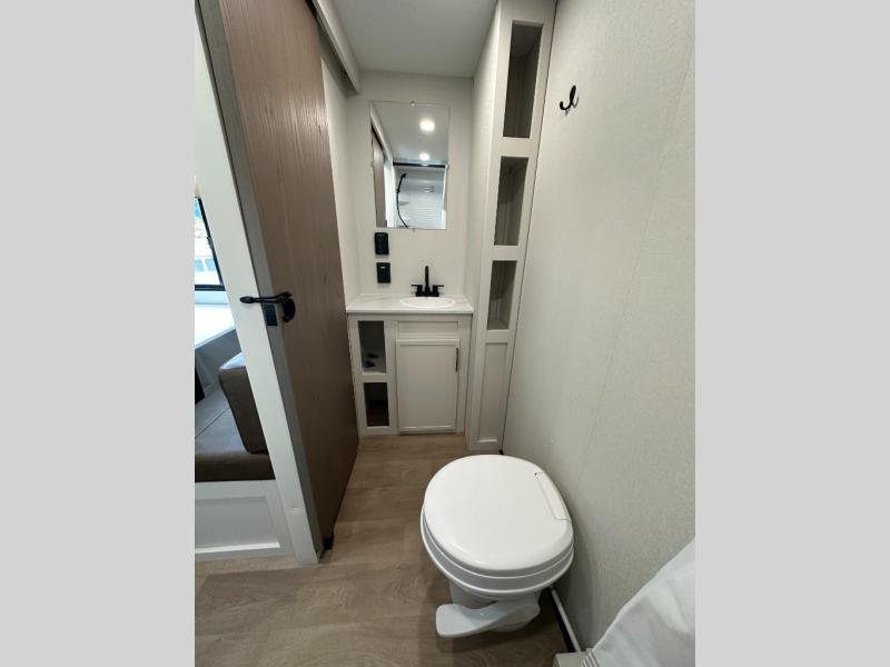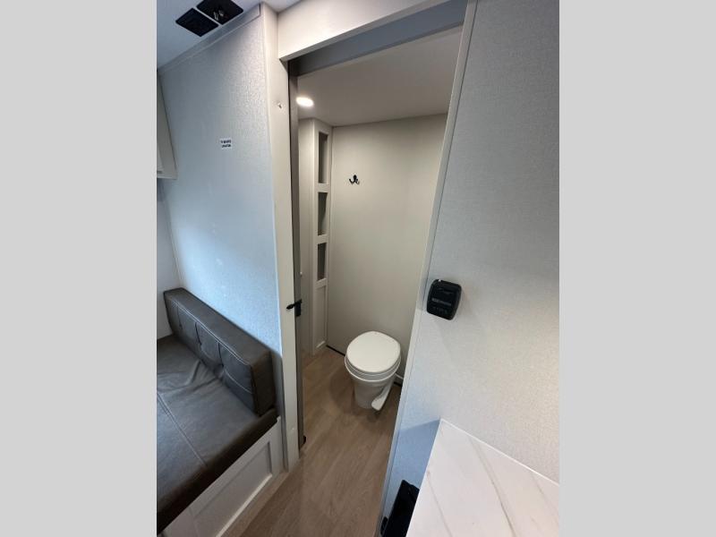 This is the perfect couple's trailer with versatile seating and sleeping space! You'll find a queen-size Murphy bed up front with storage space beside and above plus a full rear bath for added privacy. Once you've made lunch in the full kitchen, you can dine at the booth dinette or take your plate outdoors to sit under the 10' power awning. You'll also find pass-thru storage outside that will be perfect for fishing poles, lawn chairs, tools and more!