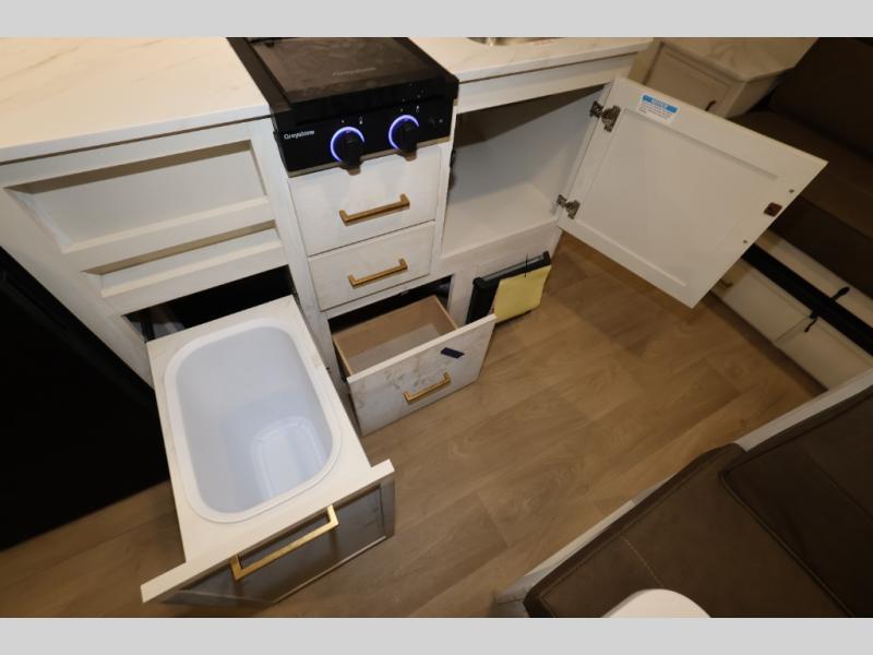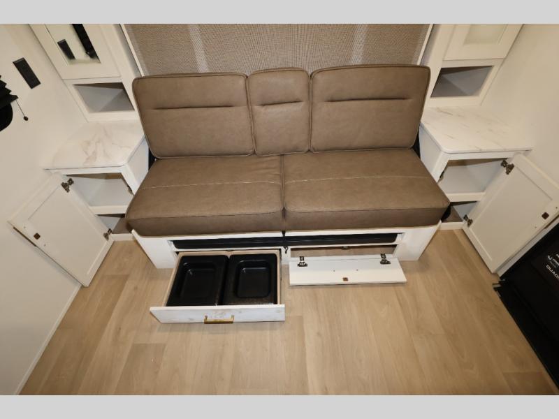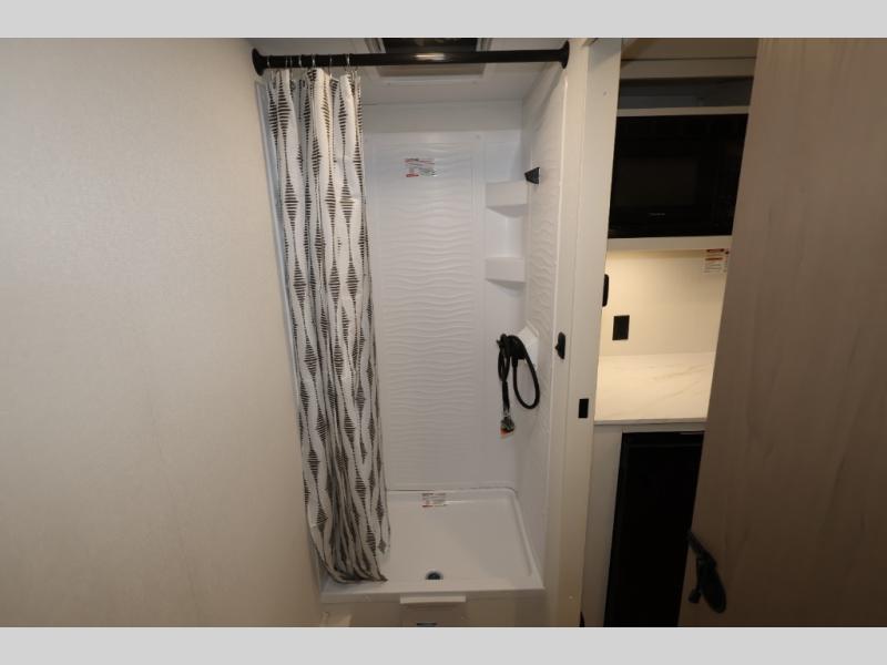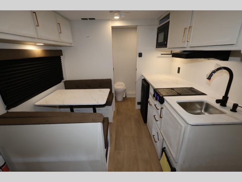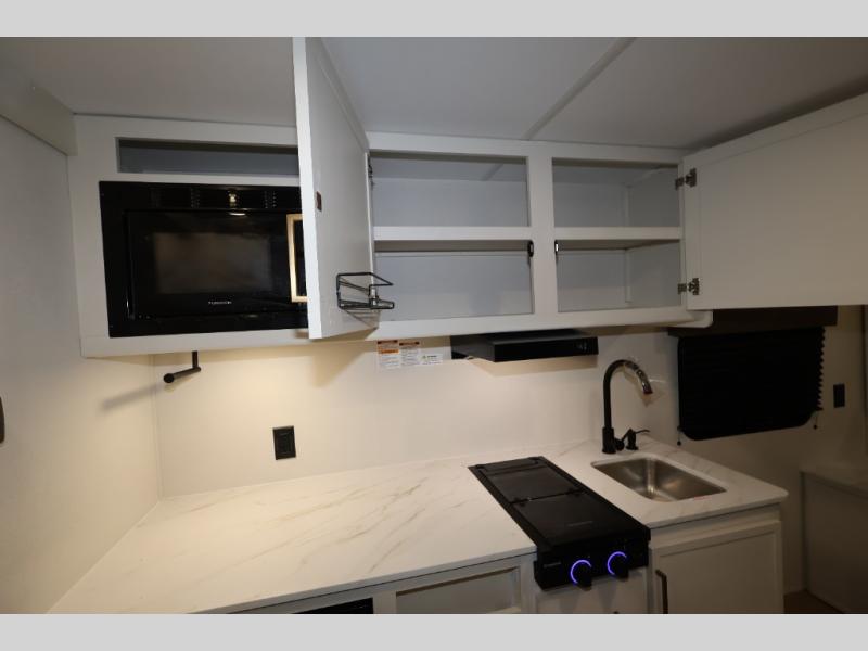 With any Transcend One travel trailer by Grand Design, you will enjoy lightweight towing thanks to their single-axle. There are many interior comforts to make camping easier than ever, such as recessed lighting, residential countertops, and a 6' 6" interior height. Each model is constructed with a heated and enclosed underbelly with suspended tanks, a moisture barrier floor enclosure, and Thermofoil over the roof and front cap for added protection. And a JBL sound system will let you listen to tunes as you visit under the power awning with a Fusion light!