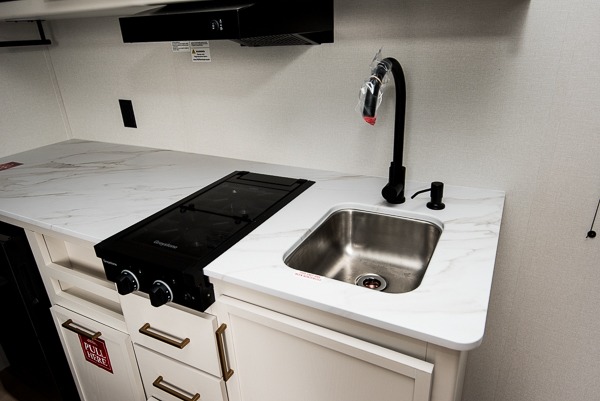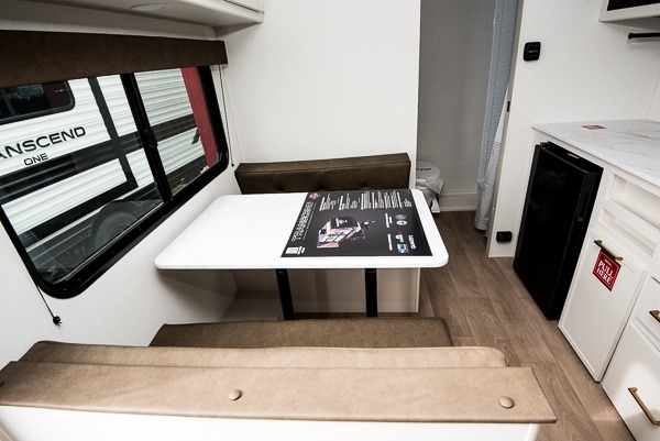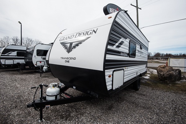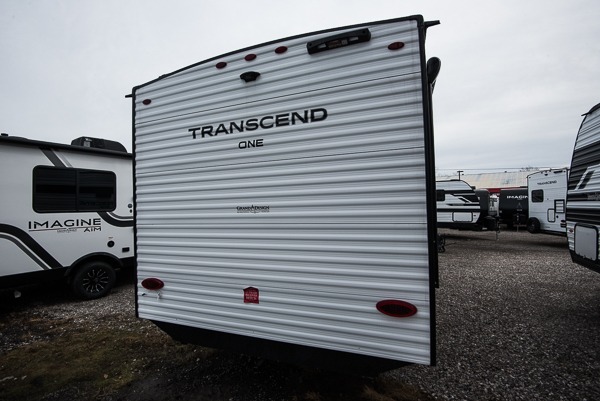 With any Transcend One travel trailer by Grand Design, you will enjoy lightweight towing thanks to their single-axle. There are many interior comforts to make camping easier than ever, such as recessed lighting, residential countertops, and a 6' 6" interior height. Each model is constructed with a heated and enclosed underbelly with suspended tanks, a moisture barrier floor enclosure, and Thermofoil over the roof and front cap for added protection. And a JBL sound system will let you listen to tunes as you visit under the power awning with a Fusion light!