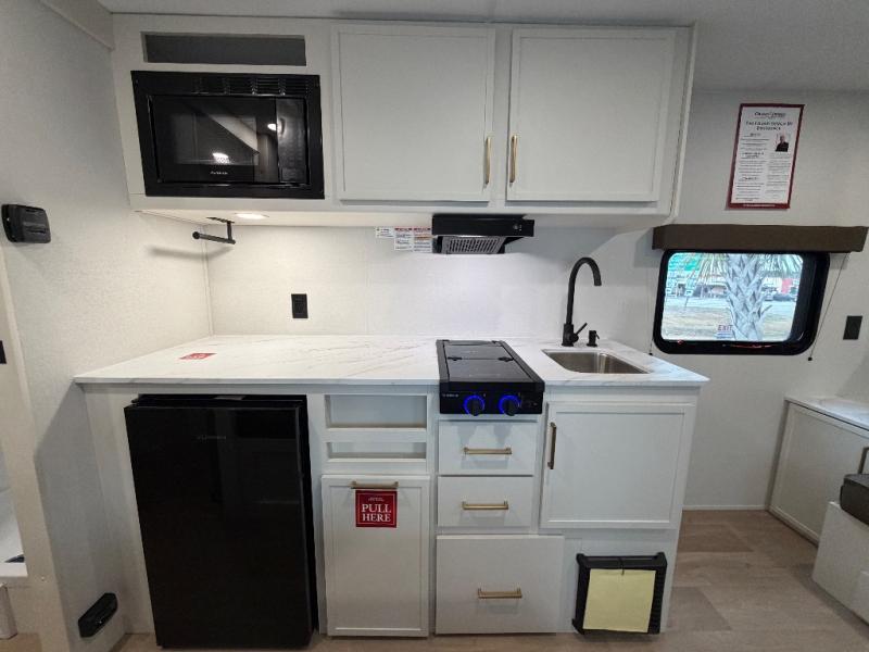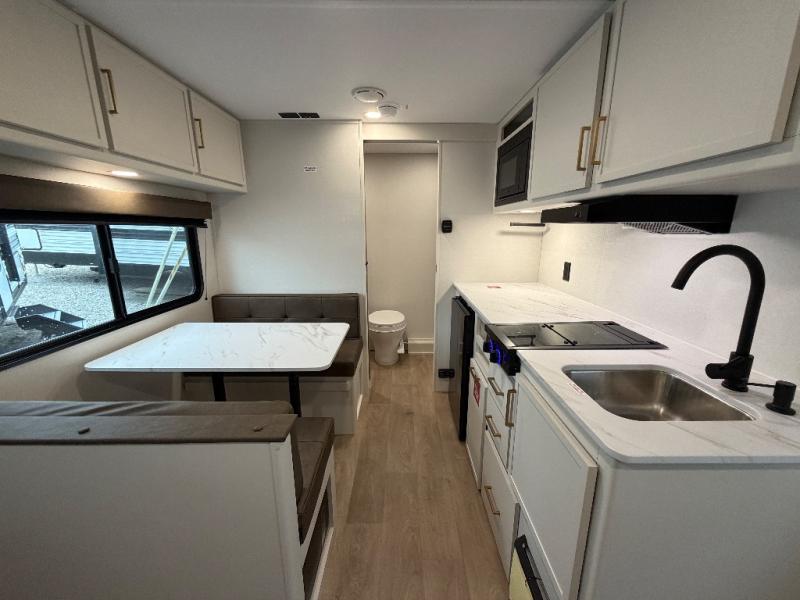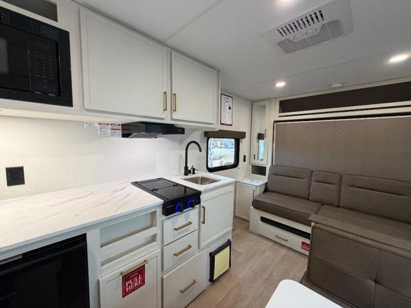 With any Transcend One travel trailer by Grand Design, you will enjoy lightweight towing thanks to their single-axle. There are many interior comforts to make camping easier than ever, such as recessed lighting, residential countertops, and a 6' 6" interior height. Each model is constructed with a heated and enclosed underbelly with suspended tanks, a moisture barrier floor enclosure, and Thermofoil over the roof and front cap for added protection. And a JBL sound system will let you listen to tunes as you visit under the power awning with a Fusion light!