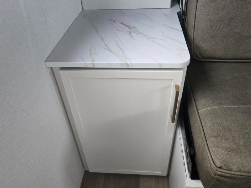 With any Transcend One travel trailer by Grand Design, you will enjoy lightweight towing thanks to their single-axle. There are many interior comforts to make camping easier than ever, such as recessed lighting, residential countertops, and a 6' 6" interior height. Each model is constructed with a heated and enclosed underbelly with suspended tanks, a moisture barrier floor enclosure, and Thermofoil over the roof and front cap for added protection. And a JBL sound system will let you listen to tunes as you visit under the power awning with a Fusion light!
