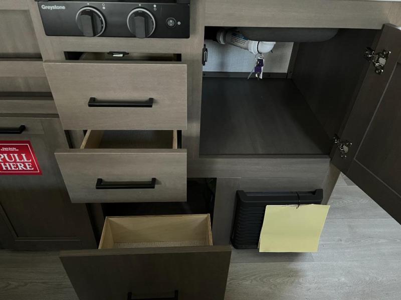 With any Transcend One travel trailer by Grand Design, you will enjoy lightweight towing thanks to their single-axle. There are many interior comforts to make camping easier than ever, such as recessed lighting, residential countertops, and a 6' 6" interior height. Each model is constructed with a heated and enclosed underbelly with suspended tanks, a moisture barrier floor enclosure, and Thermofoil over the roof and front cap for added protection. And a JBL sound system will let you listen to tunes as you visit under the power awning with a Fusion light!