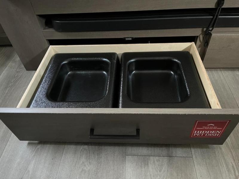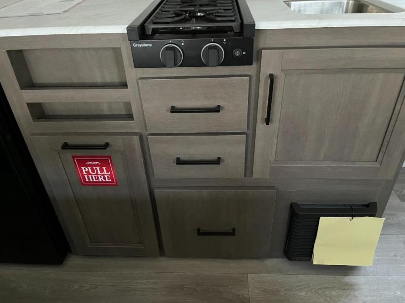 This is the perfect couple's trailer with versatile seating and sleeping space! You'll find a queen-size Murphy bed up front with storage space beside and above plus a full rear bath for added privacy. Once you've made lunch in the full kitchen, you can dine at the booth dinette or take your plate outdoors to sit under the 10' power awning. You'll also find pass-thru storage outside that will be perfect for fishing poles, lawn chairs, tools and more!
