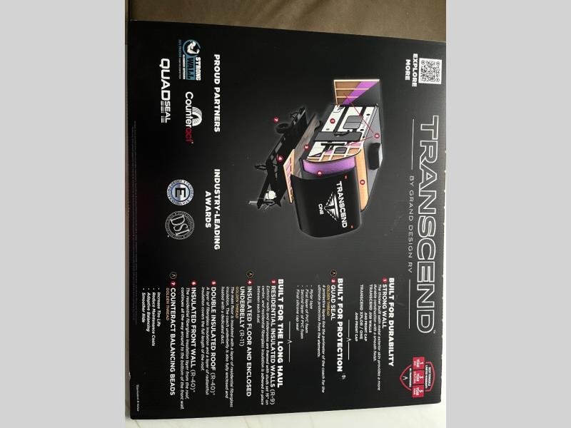 With any Transcend One travel trailer by Grand Design, you will enjoy lightweight towing thanks to their single-axle. There are many interior comforts to make camping easier than ever, such as recessed lighting, residential countertops, and a 6' 6" interior height. Each model is constructed with a heated and enclosed underbelly with suspended tanks, a moisture barrier floor enclosure, and Thermofoil over the roof and front cap for added protection. And a JBL sound system will let you listen to tunes as you visit under the power awning with a Fusion light!