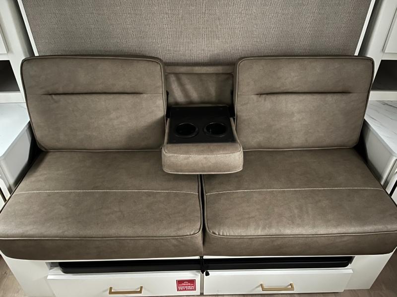 With any Transcend One travel trailer by Grand Design, you will enjoy lightweight towing thanks to their single-axle. There are many interior comforts to make camping easier than ever, such as recessed lighting, residential countertops, and a 6' 6" interior height. Each model is constructed with a heated and enclosed underbelly with suspended tanks, a moisture barrier floor enclosure, and Thermofoil over the roof and front cap for added protection. And a JBL sound system will let you listen to tunes as you visit under the power awning with a Fusion light!