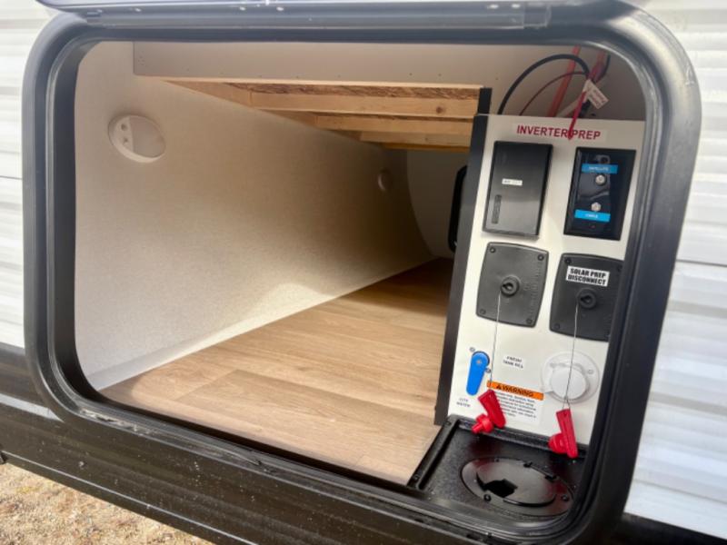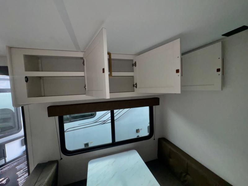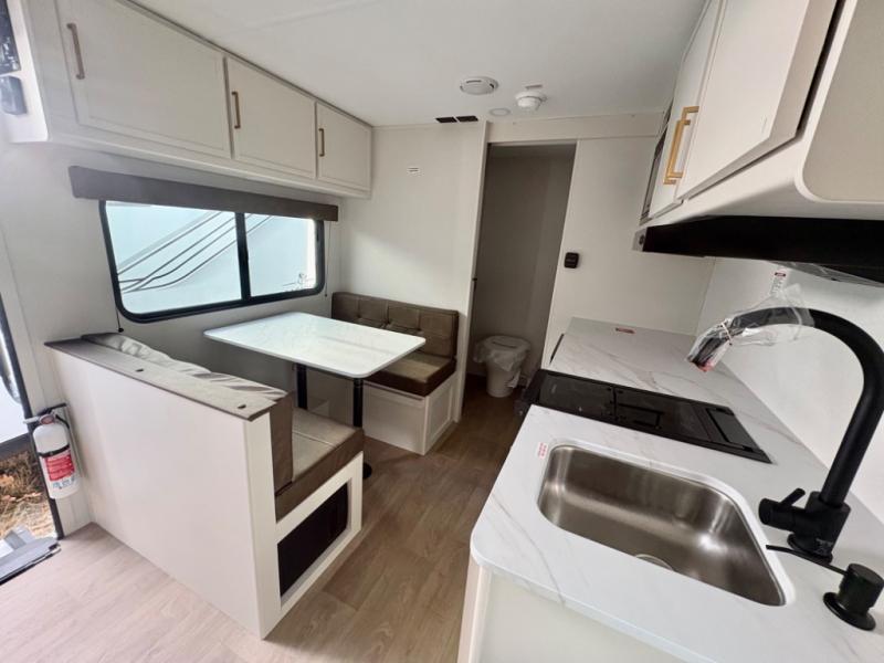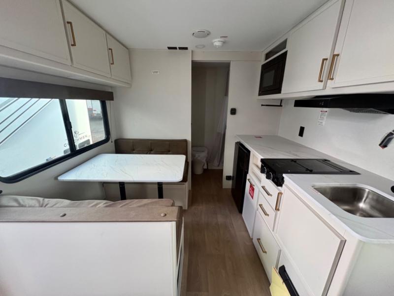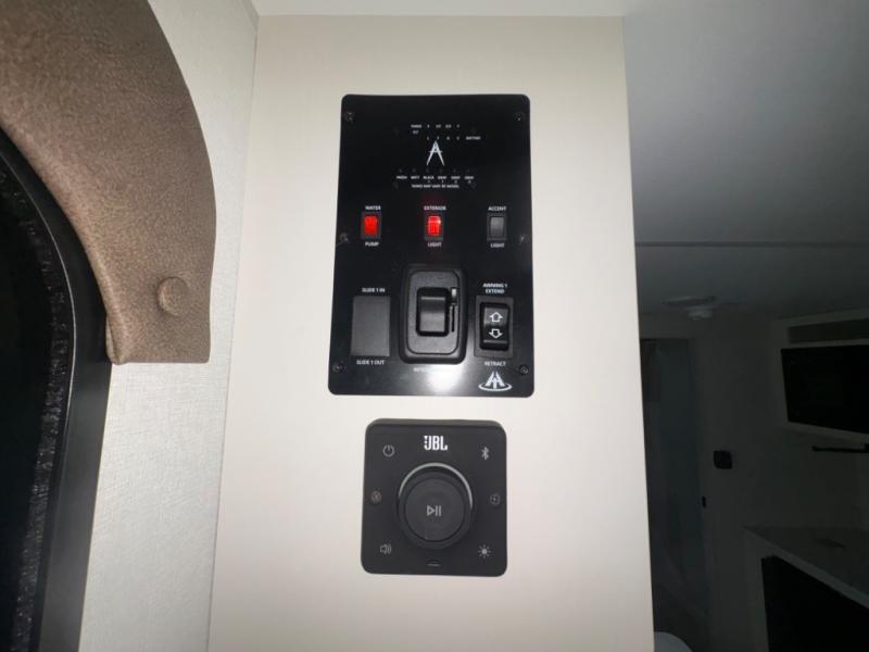 Built for easy towing, the single-axle design keeps this trailer lightweight, while the interior comforts—including recessed lighting, residential countertops, and 6' 6" ceiling height—make every stay enjoyable. The heated and enclosed underbelly with suspended tanks and Thermofoil over the roof and front cap provide added protection, making this trailer suitable for extended-season camping. Plus, a JBL sound system keeps the fun going, whether you’re indoors or enjoying the outdoors under the Fusion-lit awning.