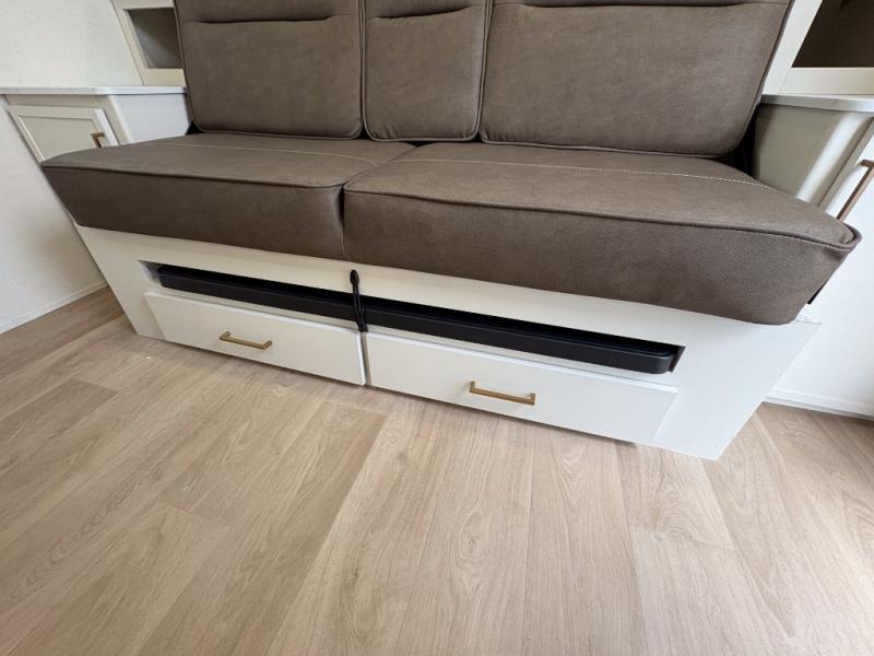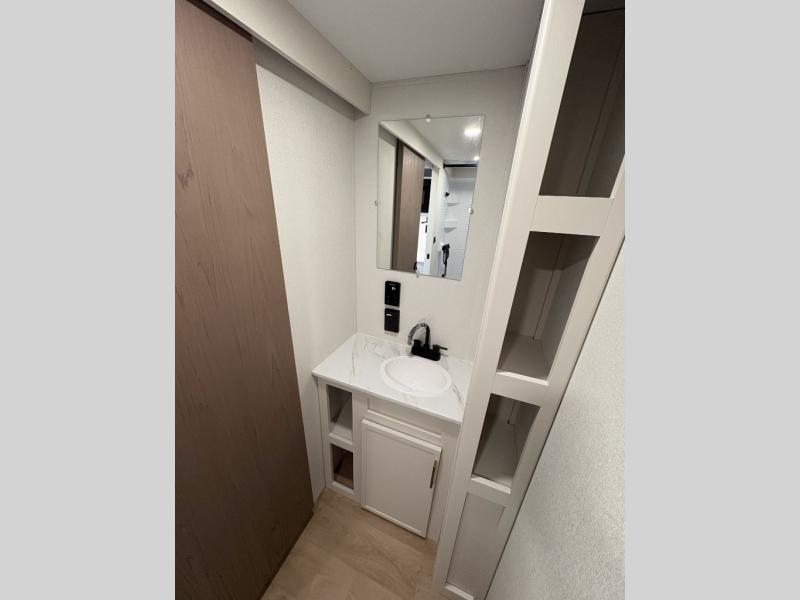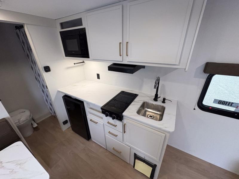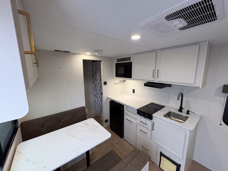 With any Transcend One travel trailer by Grand Design, you will enjoy lightweight towing thanks to their single-axle. There are many interior comforts to make camping easier than ever, such as recessed lighting, residential countertops, and a 6' 6" interior height. Each model is constructed with a heated and enclosed underbelly with suspended tanks, a moisture barrier floor enclosure, and Thermofoil over the roof and front cap for added protection. And a JBL sound system will let you listen to tunes as you visit under the power awning with a Fusion light!