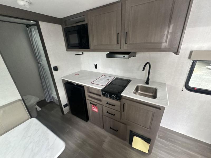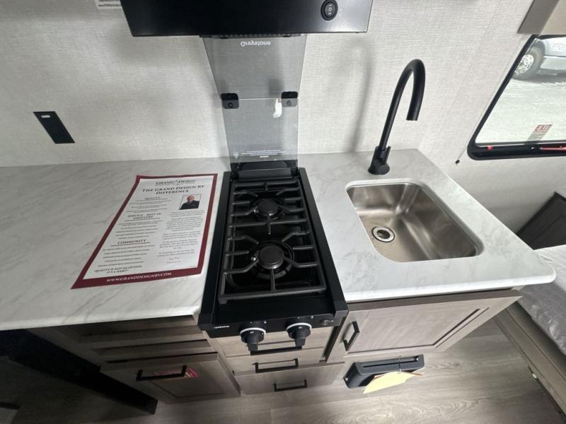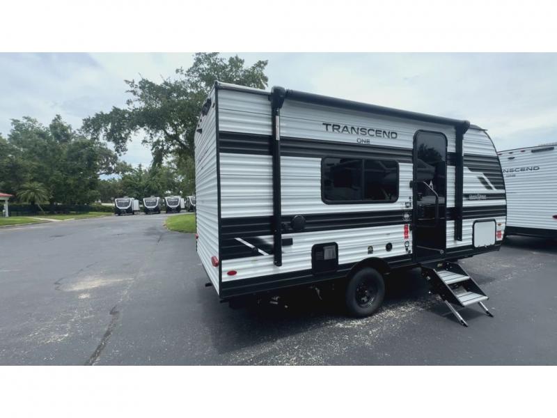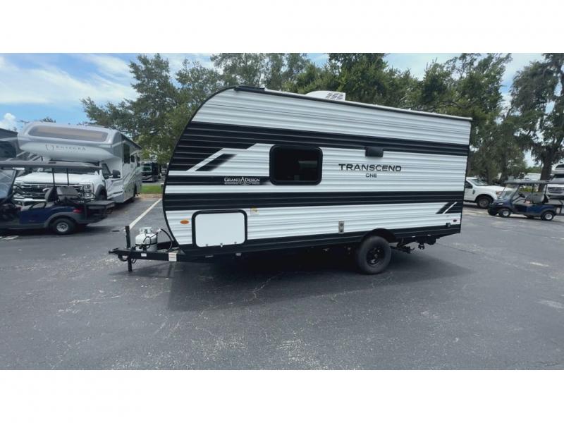 With any Transcend One travel trailer by Grand Design, you will enjoy lightweight towing thanks to their single-axle. There are many interior comforts to make camping easier than ever, such as recessed lighting, residential countertops, and a 6' 6" interior height. Each model is constructed with a heated and enclosed underbelly with suspended tanks, a moisture barrier floor enclosure, and Thermofoil over the roof and front cap for added protection. And a JBL sound system will let you listen to tunes as you visit under the power awning with a Fusion light!