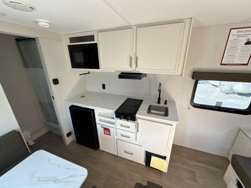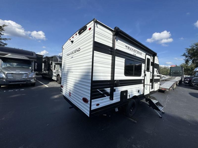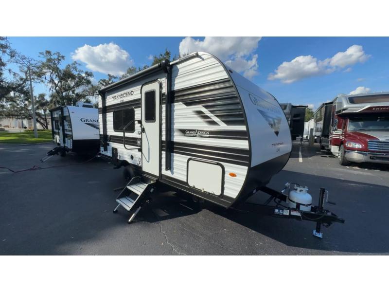 With any Transcend One travel trailer by Grand Design, you will enjoy lightweight towing thanks to their single-axle. There are many interior comforts to make camping easier than ever, such as recessed lighting, residential countertops, and a 6' 6" interior height. Each model is constructed with a heated and enclosed underbelly with suspended tanks, a moisture barrier floor enclosure, and Thermofoil over the roof and front cap for added protection. And a JBL sound system will let you listen to tunes as you visit under the power awning with a Fusion light!