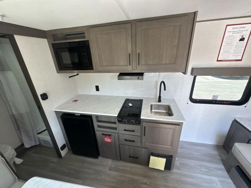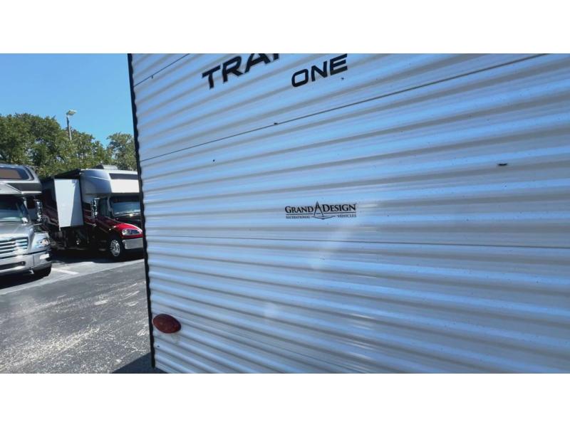 With any Transcend One travel trailer by Grand Design, you will enjoy lightweight towing thanks to their single-axle. There are many interior comforts to make camping easier than ever, such as recessed lighting, residential countertops, and a 6' 6" interior height. Each model is constructed with a heated and enclosed underbelly with suspended tanks, a moisture barrier floor enclosure, and Thermofoil over the roof and front cap for added protection. And a JBL sound system will let you listen to tunes as you visit under the power awning with a Fusion light!