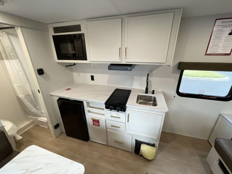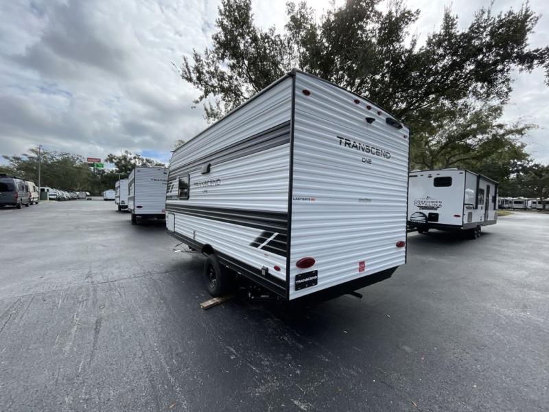 With any Transcend One travel trailer by Grand Design, you will enjoy lightweight towing thanks to their single-axle. There are many interior comforts to make camping easier than ever, such as recessed lighting, residential countertops, and a 6' 6" interior height. Each model is constructed with a heated and enclosed underbelly with suspended tanks, a moisture barrier floor enclosure, and Thermofoil over the roof and front cap for added protection. And a JBL sound system will let you listen to tunes as you visit under the power awning with a Fusion light!