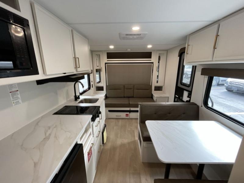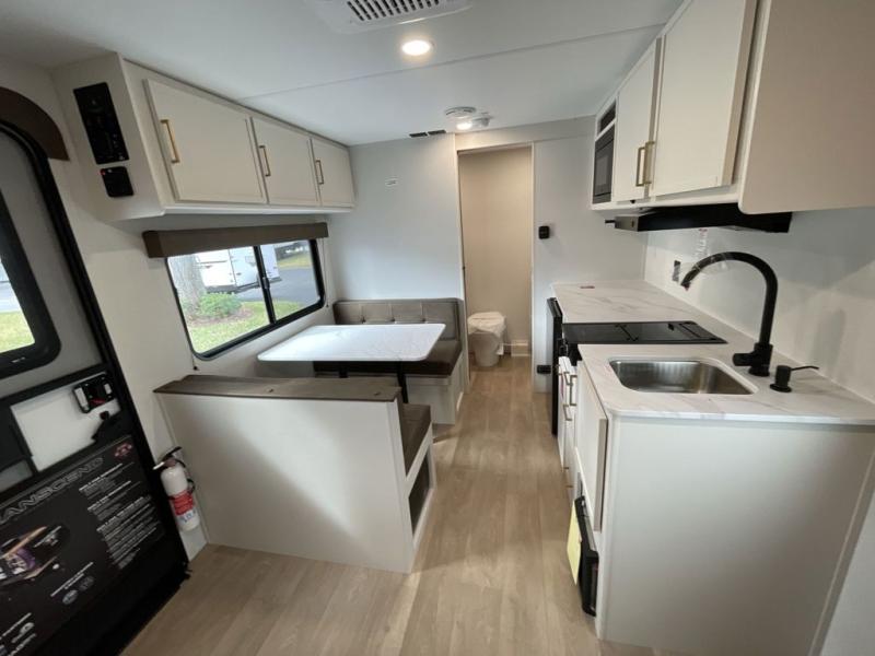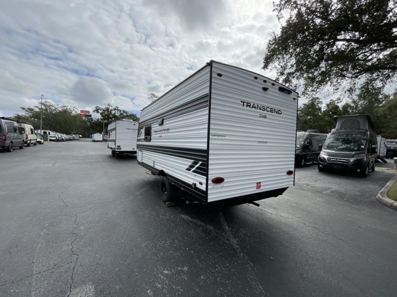 With any Transcend One travel trailer by Grand Design, you will enjoy lightweight towing thanks to their single-axle. There are many interior comforts to make camping easier than ever, such as recessed lighting, residential countertops, and a 6' 6" interior height. Each model is constructed with a heated and enclosed underbelly with suspended tanks, a moisture barrier floor enclosure, and Thermofoil over the roof and front cap for added protection. And a JBL sound system will let you listen to tunes as you visit under the power awning with a Fusion light!