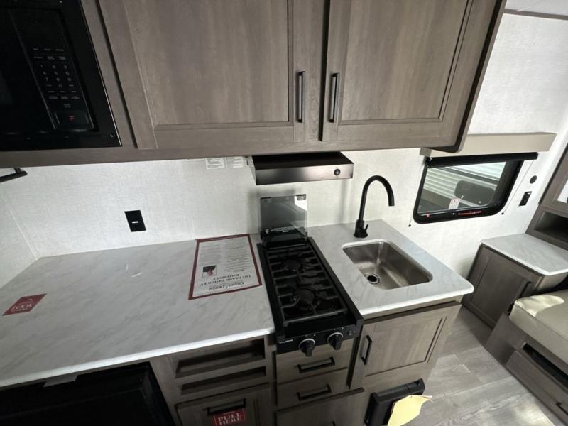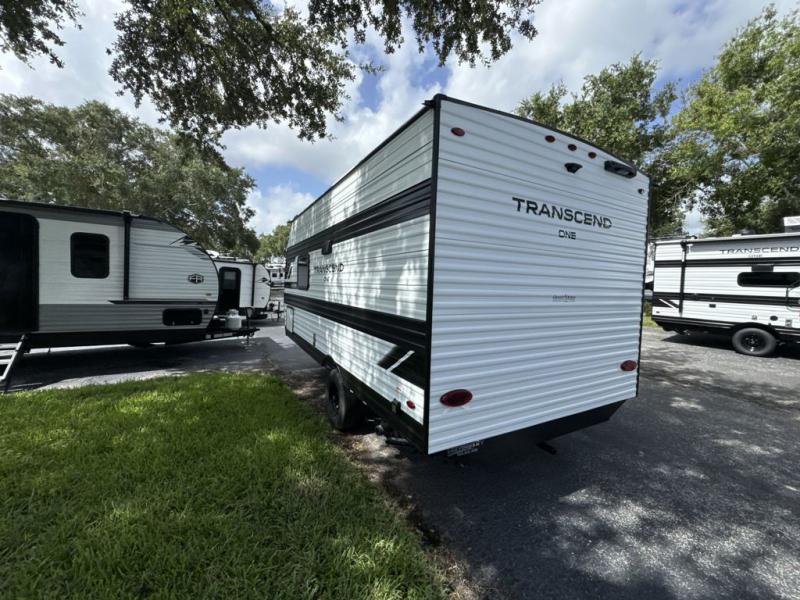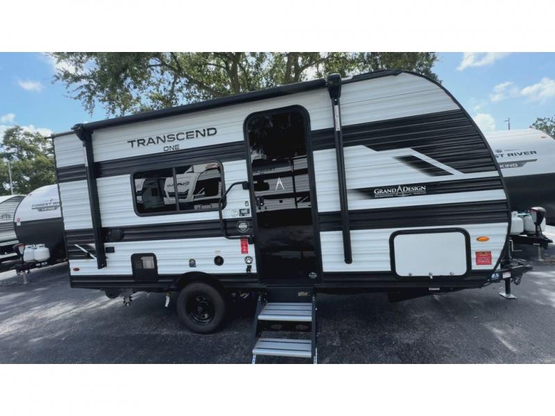 With any Transcend One travel trailer by Grand Design, you will enjoy lightweight towing thanks to their single-axle. There are many interior comforts to make camping easier than ever, such as recessed lighting, residential countertops, and a 6' 6" interior height. Each model is constructed with a heated and enclosed underbelly with suspended tanks, a moisture barrier floor enclosure, and Thermofoil over the roof and front cap for added protection. And a JBL sound system will let you listen to tunes as you visit under the power awning with a Fusion light!