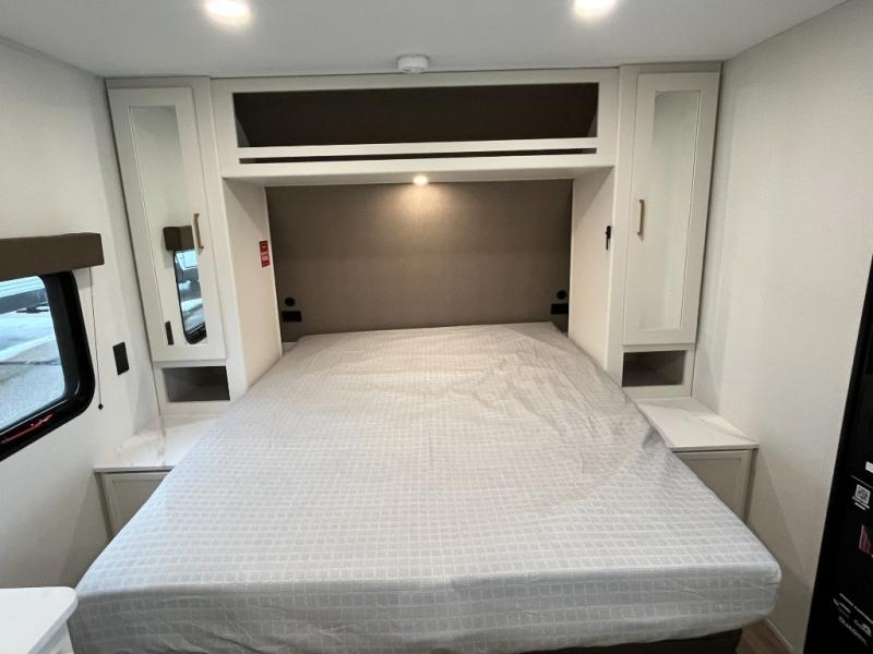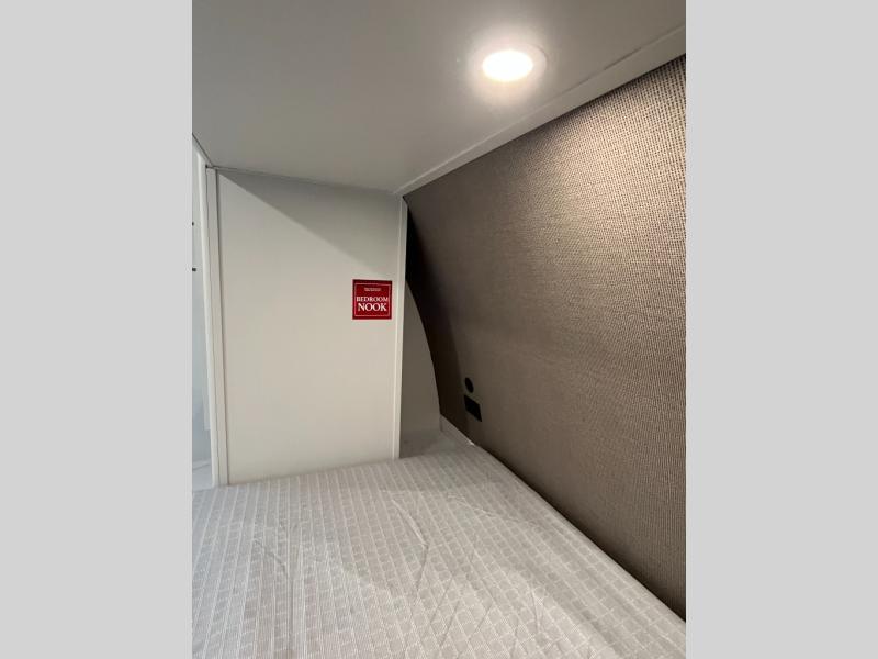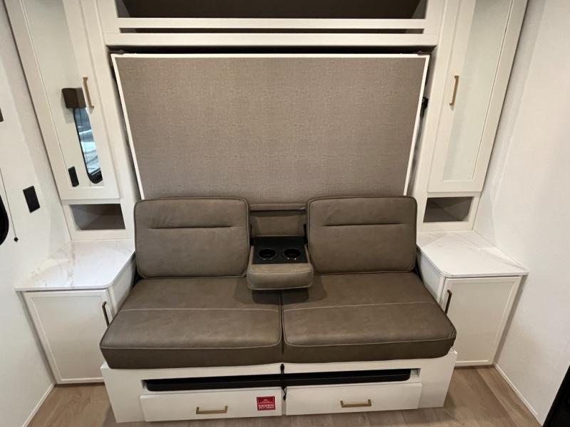 This is the perfect couple's trailer with versatile seating and sleeping space! You'll find a queen-size Murphy bed up front with storage space beside and above plus a full rear bath for added privacy. Once you've made lunch in the full kitchen, you can dine at the booth dinette or take your plate outdoors to sit under the 10' power awning. You'll also find pass-thru storage outside that will be perfect for fishing poles, lawn chairs, tools and more!