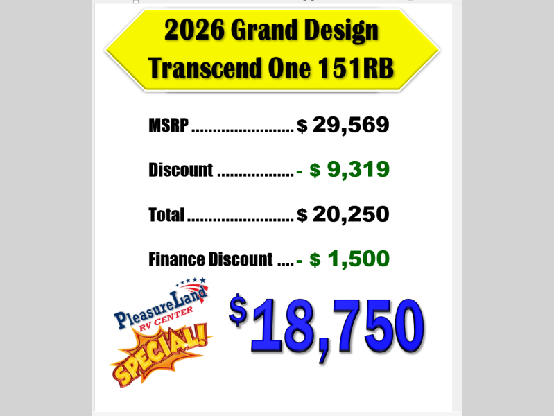 New 2026 Grand Design Transcend One 151RB Travel Trailer