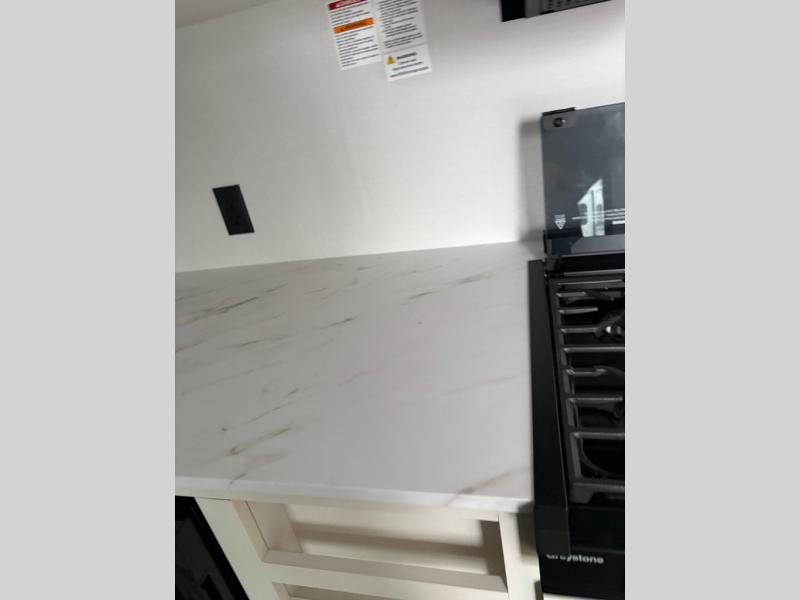 With any Transcend One travel trailer by Grand Design, you will enjoy lightweight towing thanks to their single-axle. There are many interior comforts to make camping easier than ever, such as recessed lighting, residential countertops, and a 6' 6" interior height. Each model is constructed with a heated and enclosed underbelly with suspended tanks, a moisture barrier floor enclosure, and Thermofoil over the roof and front cap for added protection. And a JBL sound system will let you listen to tunes as you visit under the power awning with a Fusion light!