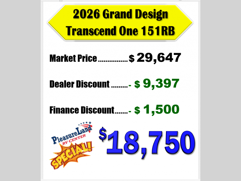 New 2026 Grand Design Transcend One 151RB Travel Trailer