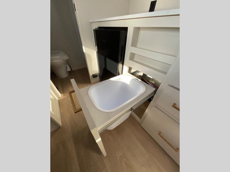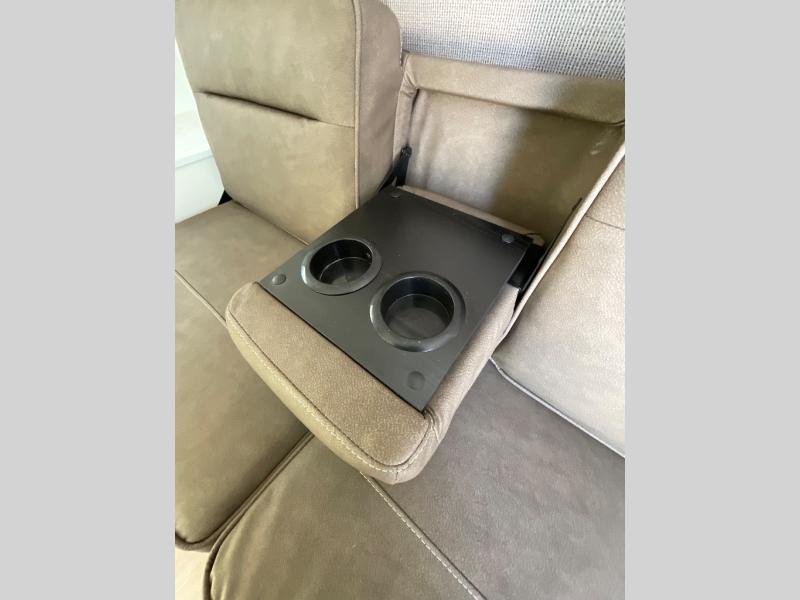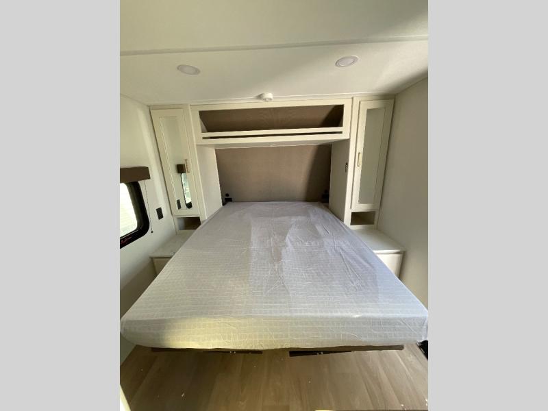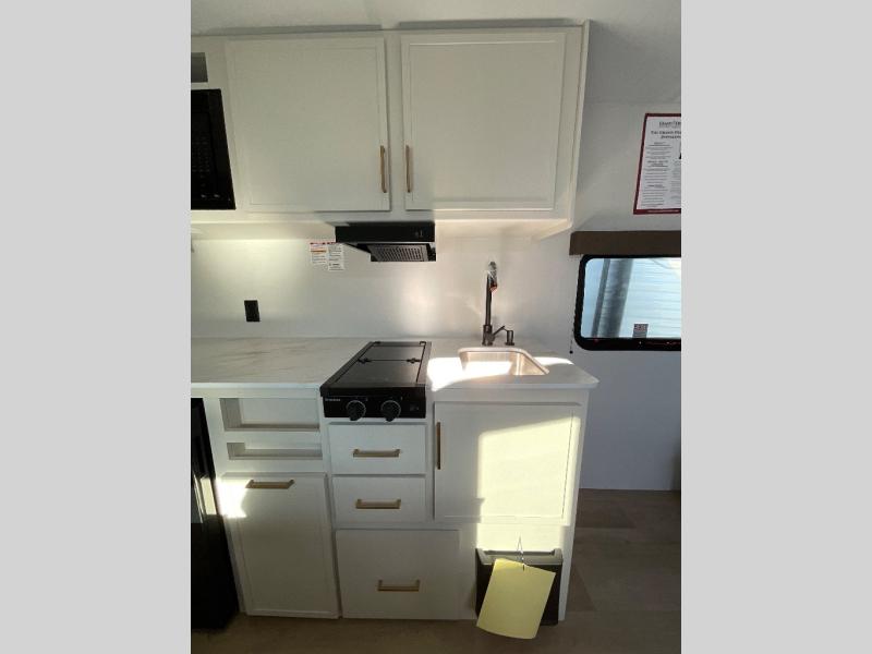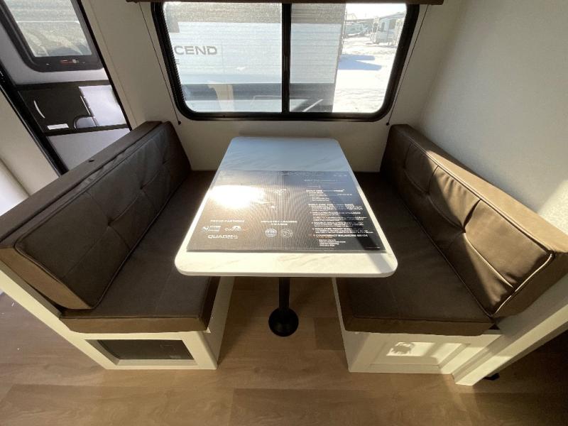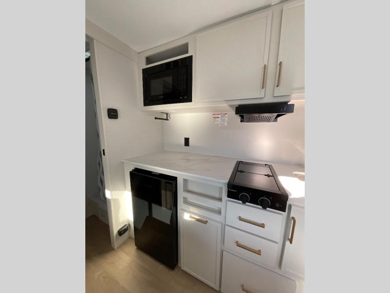 With any Transcend One travel trailer by Grand Design, you will enjoy lightweight towing thanks to their single-axle. There are many interior comforts to make camping easier than ever, such as recessed lighting, residential countertops, and a 6' 6" interior height. Each model is constructed with a heated and enclosed underbelly with suspended tanks, a moisture barrier floor enclosure, and Thermofoil over the roof and front cap for added protection. And a JBL sound system will let you listen to tunes as you visit under the power awning with a Fusion light!