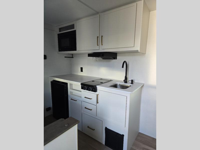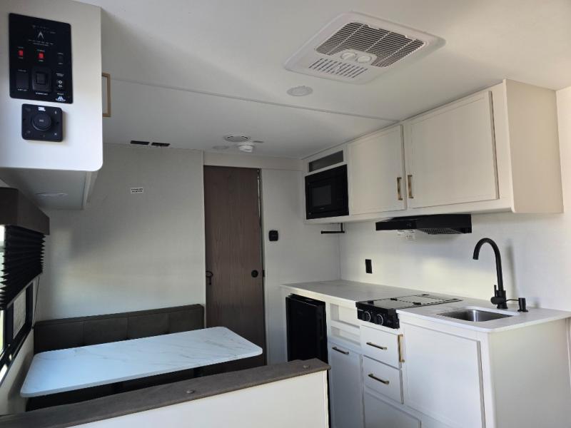 With any Transcend One travel trailer by Grand Design, you will enjoy lightweight towing thanks to their single-axle. There are many interior comforts to make camping easier than ever, such as recessed lighting, residential countertops, and a 6' 6" interior height. Each model is constructed with a heated and enclosed underbelly with suspended tanks, a moisture barrier floor enclosure, and Thermofoil over the roof and front cap for added protection. And a JBL sound system will let you listen to tunes as you visit under the power awning with a Fusion light!