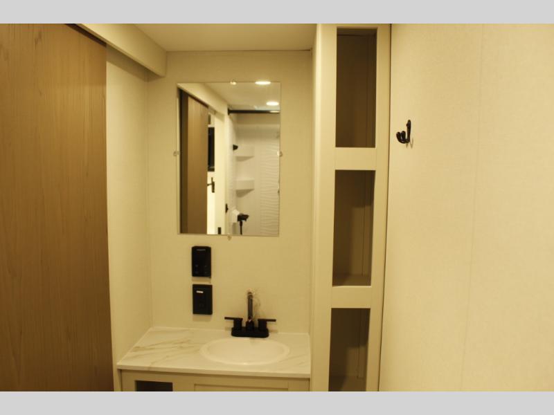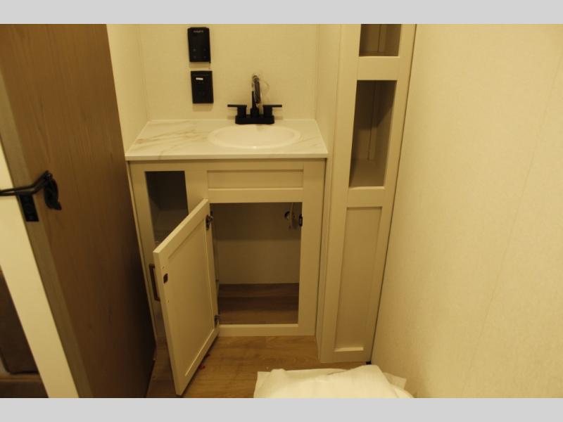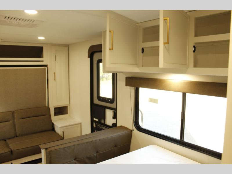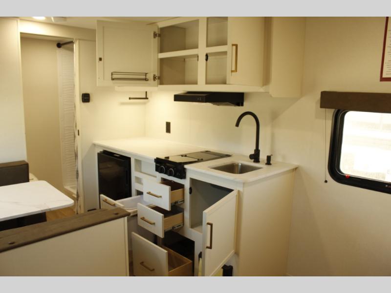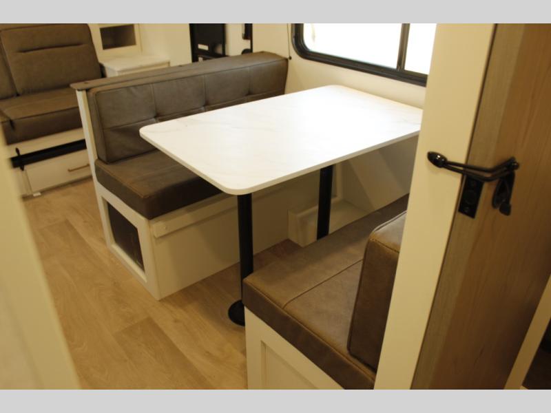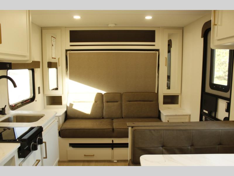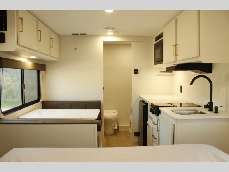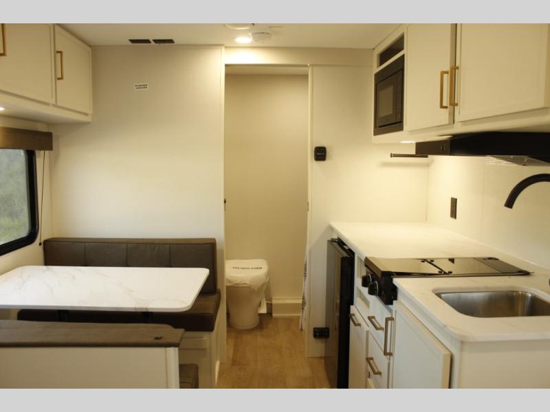 With any Transcend One travel trailer by Grand Design, you will enjoy lightweight towing thanks to their single-axle. There are many interior comforts to make camping easier than ever, such as recessed lighting, residential countertops, and a 6' 6" interior height. Each model is constructed with a heated and enclosed underbelly with suspended tanks, a moisture barrier floor enclosure, and Thermofoil over the roof and front cap for added protection. And a JBL sound system will let you listen to tunes as you visit under the power awning with a Fusion light!