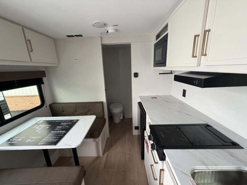 This is the perfect couple's trailer with versatile seating and sleeping space! You'll find a queen-size Murphy bed up front with storage space beside and above plus a full rear bath for added privacy. Once you've made lunch in the full kitchen, you can dine at the booth dinette or take your plate outdoors to sit under the 10' power awning. You'll also find pass-thru storage outside that will be perfect for fishing poles, lawn chairs, tools and more!
