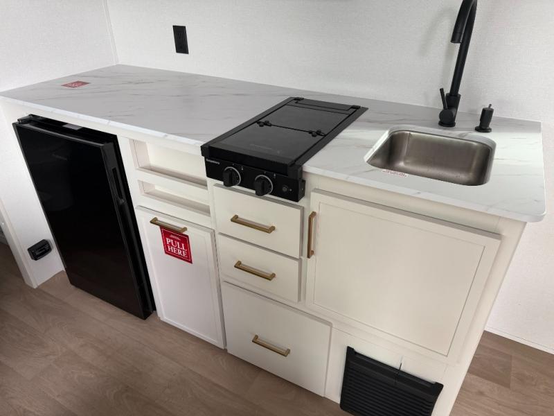 With any Transcend One travel trailer by Grand Design, you will enjoy lightweight towing thanks to their single-axle. There are many interior comforts to make camping easier than ever, such as recessed lighting, residential countertops, and a 6' 6" interior height. Each model is constructed with a heated and enclosed underbelly with suspended tanks, a moisture barrier floor enclosure, and Thermofoil over the roof and front cap for added protection. And a JBL sound system will let you listen to tunes as you visit under the power awning with a Fusion light!
