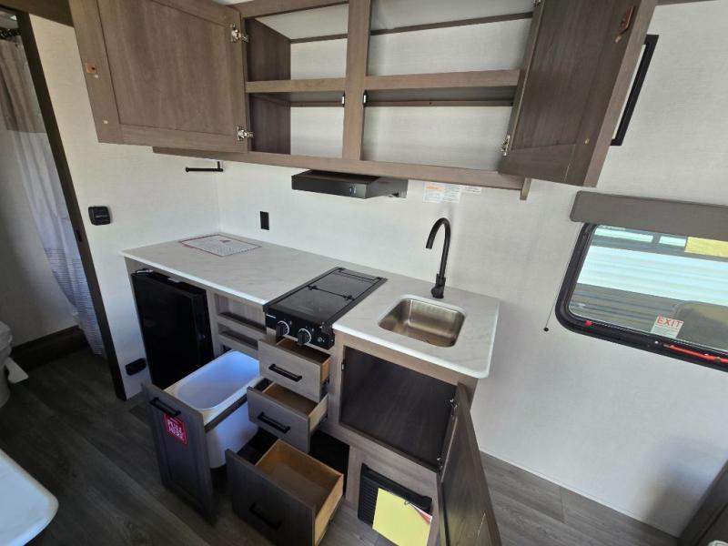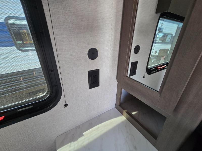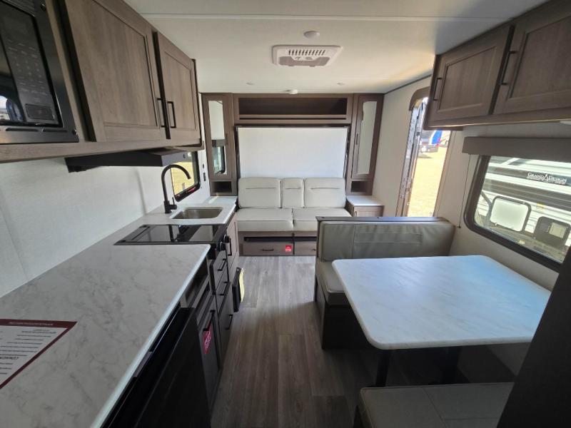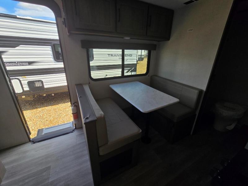 With any Transcend One travel trailer by Grand Design, you will enjoy lightweight towing thanks to their single-axle. There are many interior comforts to make camping easier than ever, such as recessed lighting, residential countertops, and a 6' 6" interior height. Each model is constructed with a heated and enclosed underbelly with suspended tanks, a moisture barrier floor enclosure, and Thermofoil over the roof and front cap for added protection. And a JBL sound system will let you listen to tunes as you visit under the power awning with a Fusion light!