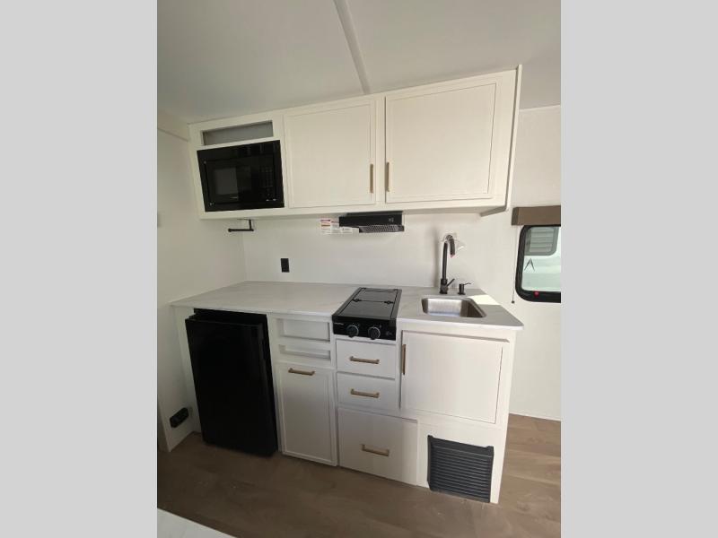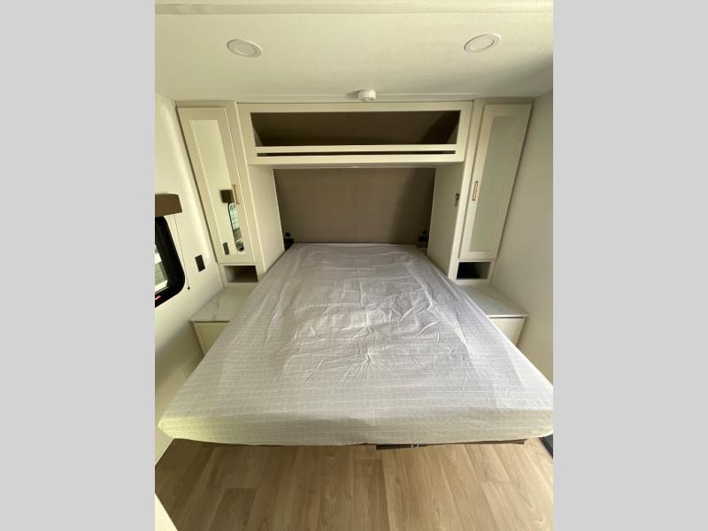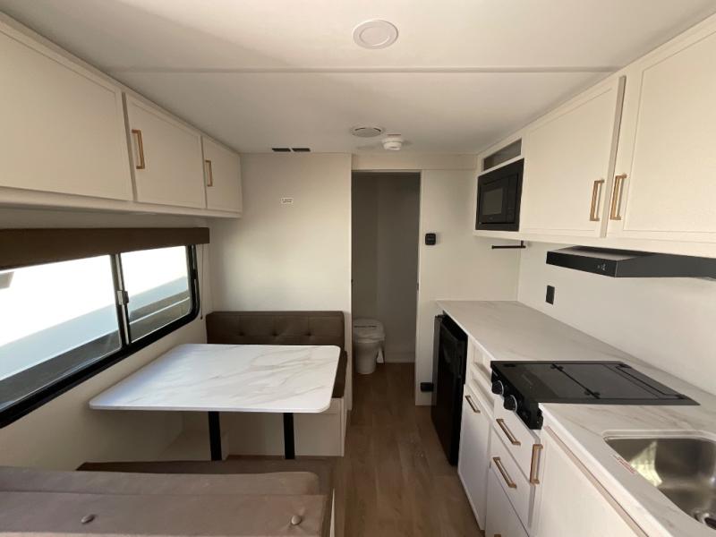 With any Transcend One travel trailer by Grand Design, you will enjoy lightweight towing thanks to their single-axle. There are many interior comforts to make camping easier than ever, such as recessed lighting, residential countertops, and a 6' 6" interior height. Each model is constructed with a heated and enclosed underbelly with suspended tanks, a moisture barrier floor enclosure, and Thermofoil over the roof and front cap for added protection. And a JBL sound system will let you listen to tunes as you visit under the power awning with a Fusion light!