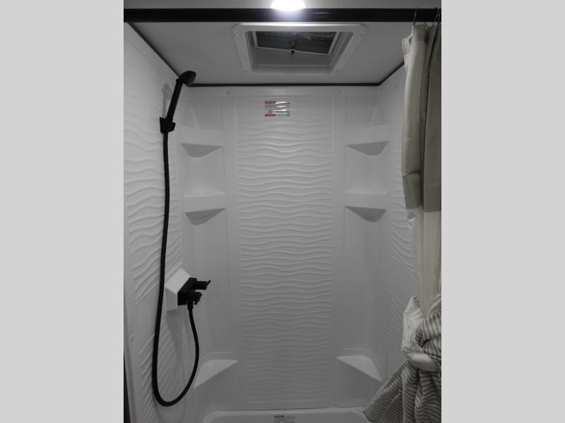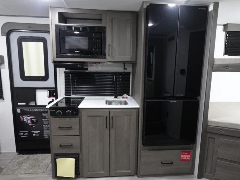 With any Transcend One travel trailer by Grand Design, you will enjoy lightweight towing thanks to their single-axle. There are many interior comforts to make camping easier than ever, such as recessed lighting, residential countertops, and a 6' 6" interior height. Each model is constructed with a heated and enclosed underbelly with suspended tanks, a moisture barrier floor enclosure, and Thermofoil over the roof and front cap for added protection. And a JBL sound system will let you listen to tunes as you visit under the power awning with a Fusion light!