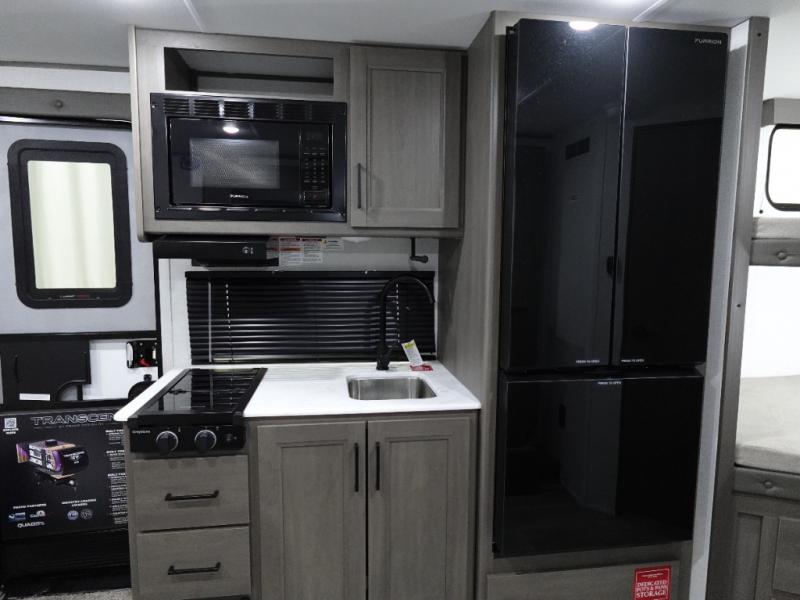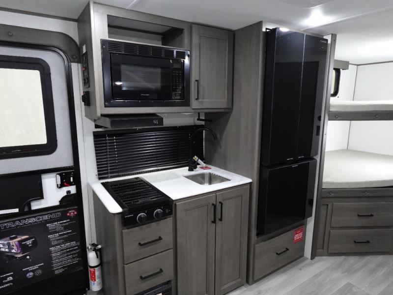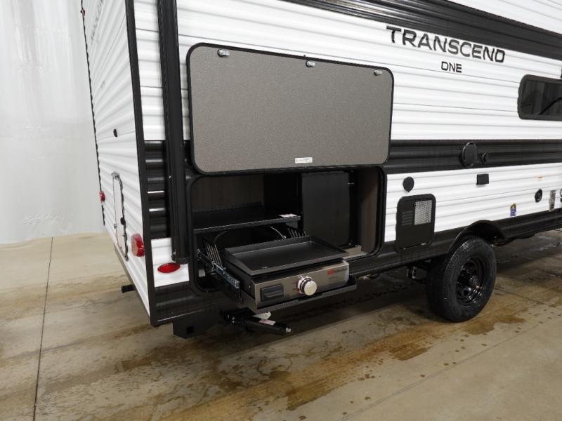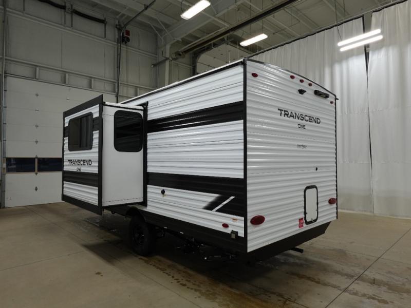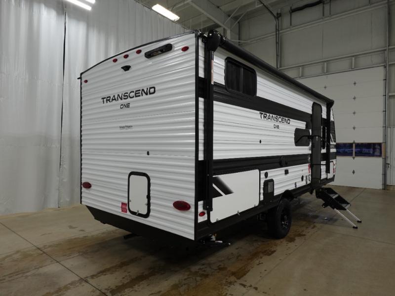 With any Transcend One travel trailer by Grand Design, you will enjoy lightweight towing thanks to their single-axle. There are many interior comforts to make camping easier than ever, such as recessed lighting, residential countertops, and a 6' 6" interior height. Each model is constructed with a heated and enclosed underbelly with suspended tanks, a moisture barrier floor enclosure, and Thermofoil over the roof and front cap for added protection. And a JBL sound system will let you listen to tunes as you visit under the power awning with a Fusion light!