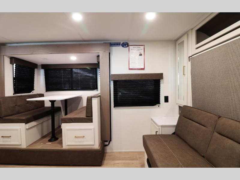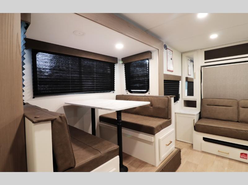 Mid-kitchen layout with booth dinette slide for family meals and hanging out.