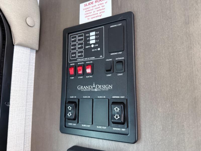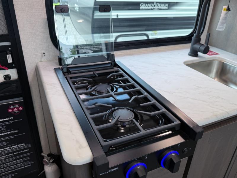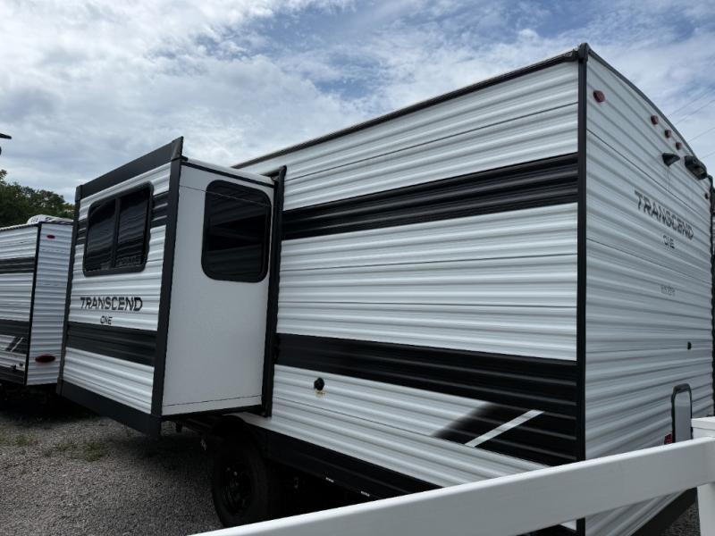 With any Transcend One travel trailer by Grand Design, you will enjoy lightweight towing thanks to their single-axle. There are many interior comforts to make camping easier than ever, such as recessed lighting, residential countertops, and a 6' 6" interior height. Each model is constructed with a heated and enclosed underbelly with suspended tanks, a moisture barrier floor enclosure, and Thermofoil over the roof and front cap for added protection. And a JBL sound system will let you listen to tunes as you visit under the power awning with a Fusion light!