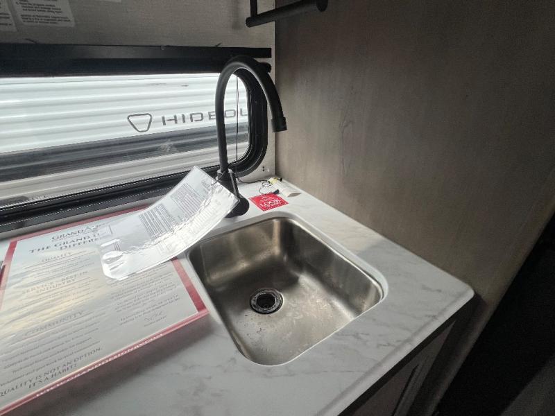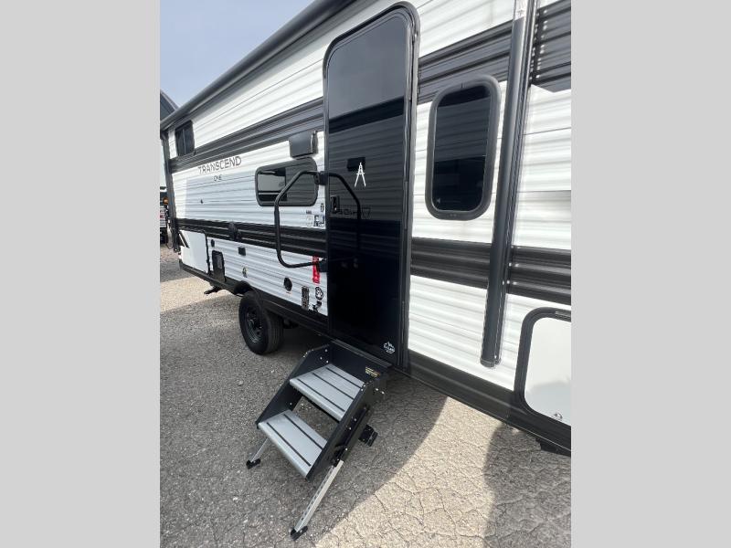With any Transcend One travel trailer by Grand Design, you will enjoy lightweight towing thanks to their single-axle. There are many interior comforts to make camping easier than ever, such as recessed lighting, residential countertops, and a 6' 6" interior height. Each model is constructed with a heated and enclosed underbelly with suspended tanks, a moisture barrier floor enclosure, and Thermofoil over the roof and front cap for added protection. And a JBL sound system will let you listen to tunes as you visit under the power awning with a Fusion light!