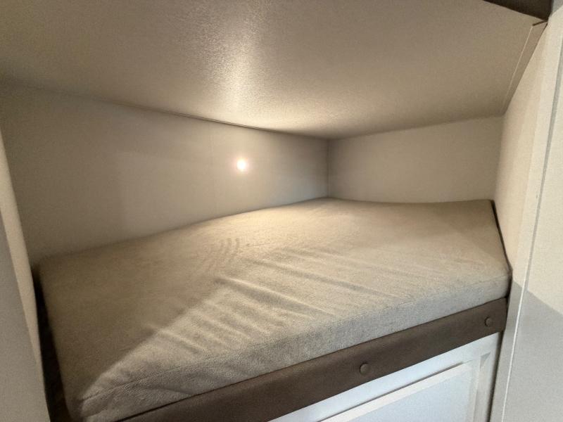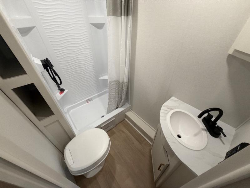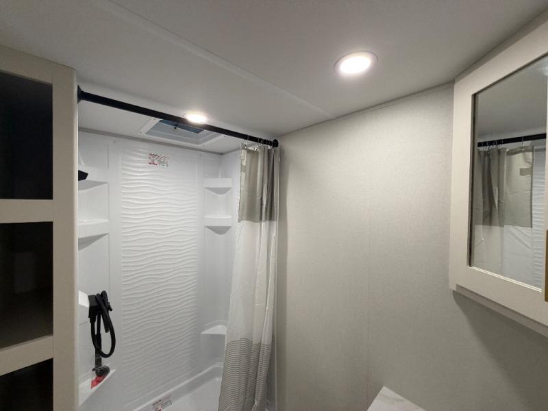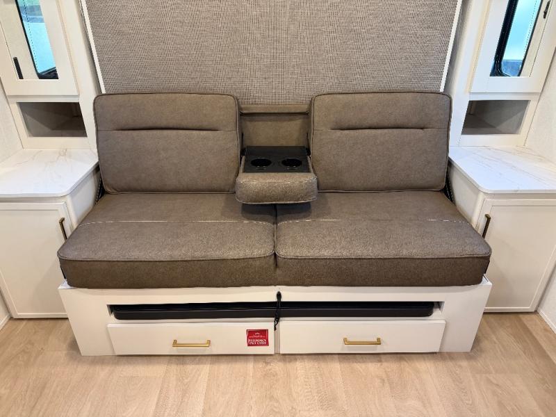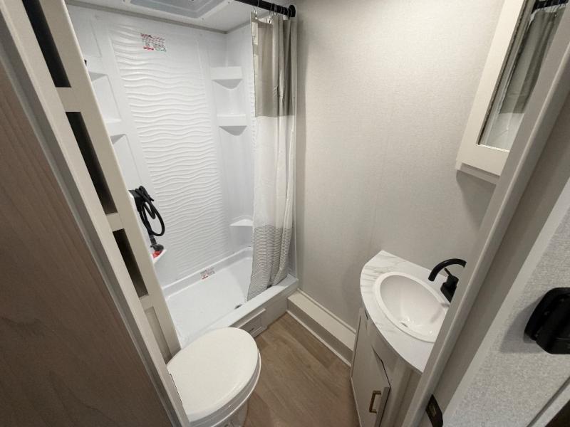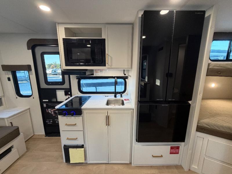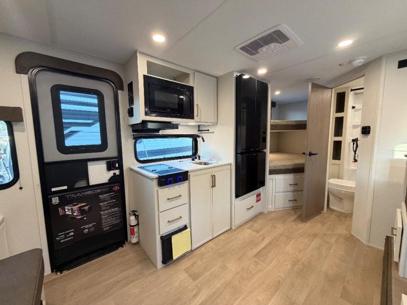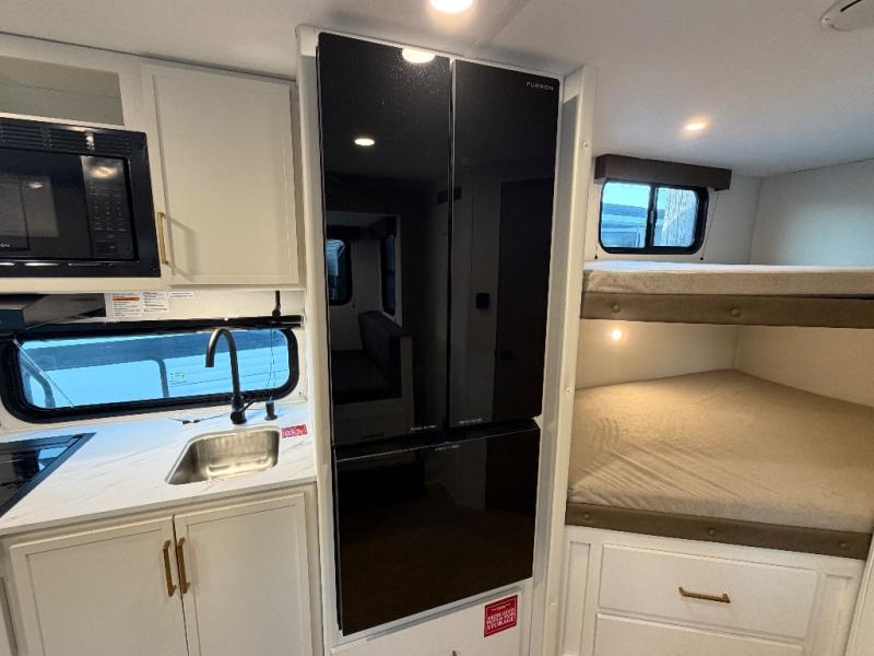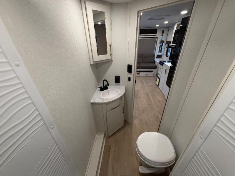 Spacious and versatile, the Transcend One 161BH is perfect for weekend getaways or weeklong escapes to the lake. The front Murphy bed transforms the living area with ease and includes storage on both sides, plus a pull-out pet drawer to keep your furry companions happy. Double-size bunks with privacy curtains give your guests or little ones a comfortable place to sleep, and the full bath directly beside the bunks makes nighttime routines simple.