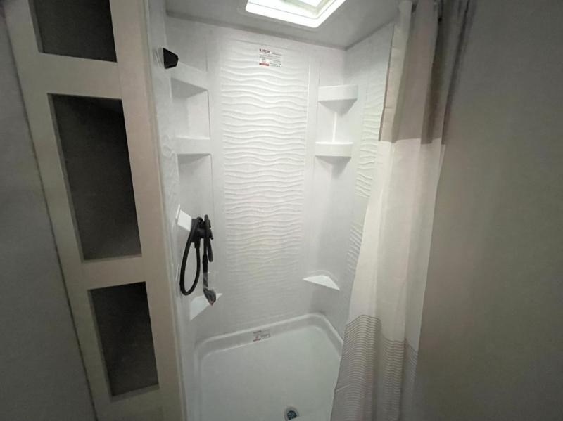 This compact travel trailer offers big features for family or solo adventures. The Murphy bed provides both seating and sleeping options, while the double size bunks are perfect for kids or guests. The booth dinette offers additional seating and dining space, and the full bath adds all the convenience of home.