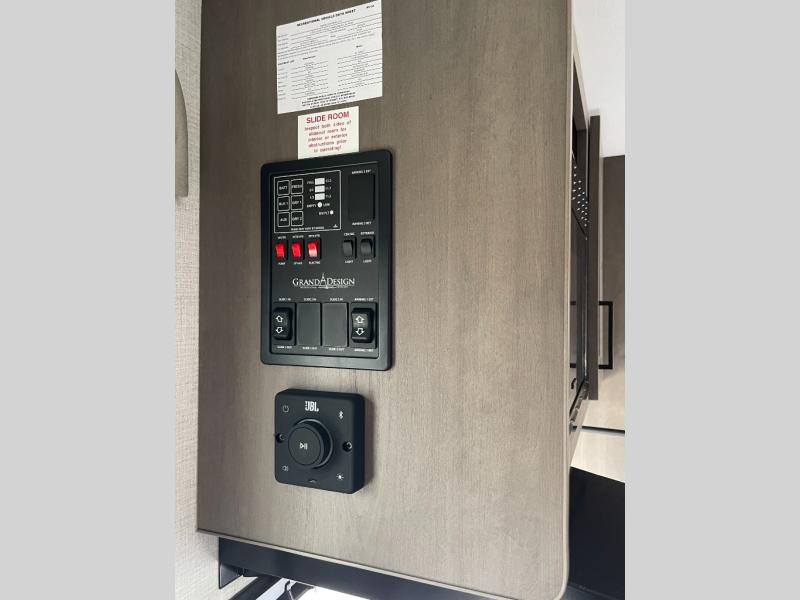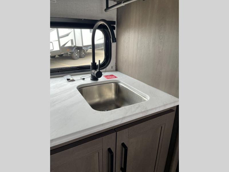 With any Transcend One travel trailer by Grand Design, you will enjoy lightweight towing thanks to their single-axle. There are many interior comforts to make camping easier than ever, such as recessed lighting, residential countertops, and a 6' 6" interior height. Each model is constructed with a heated and enclosed underbelly with suspended tanks, a moisture barrier floor enclosure, and Thermofoil over the roof and front cap for added protection. And a JBL sound system will let you listen to tunes as you visit under the power awning with a Fusion light!