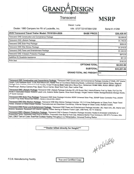 DISPLAYING STOCK PHOTOS, CONFIRM OPTIONS WITH CAMPERS INN RV LOUISVILLE 812-282-7718