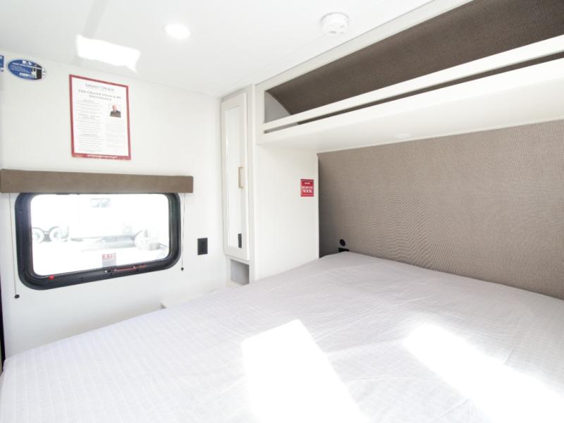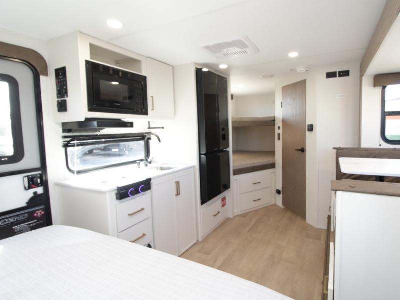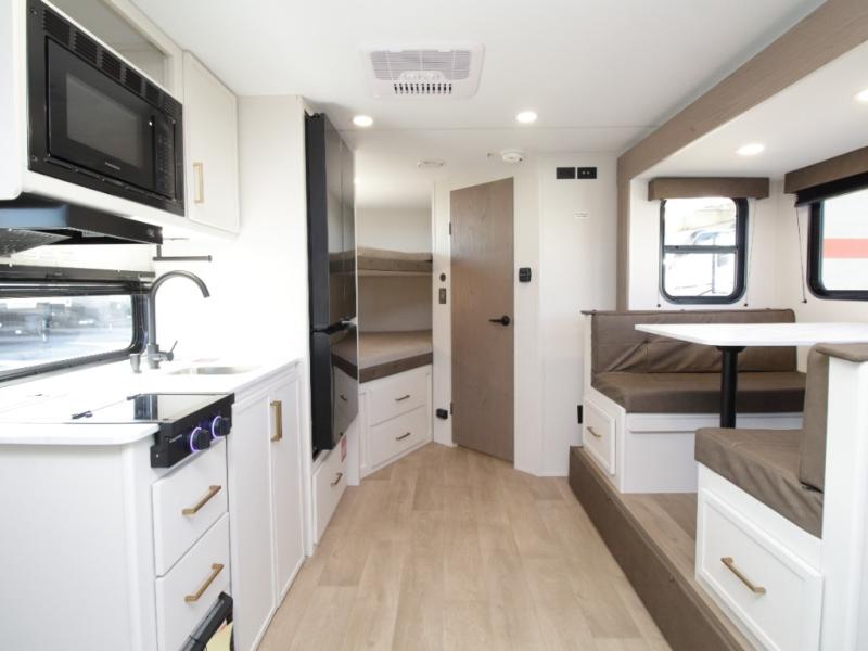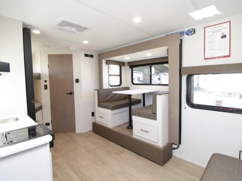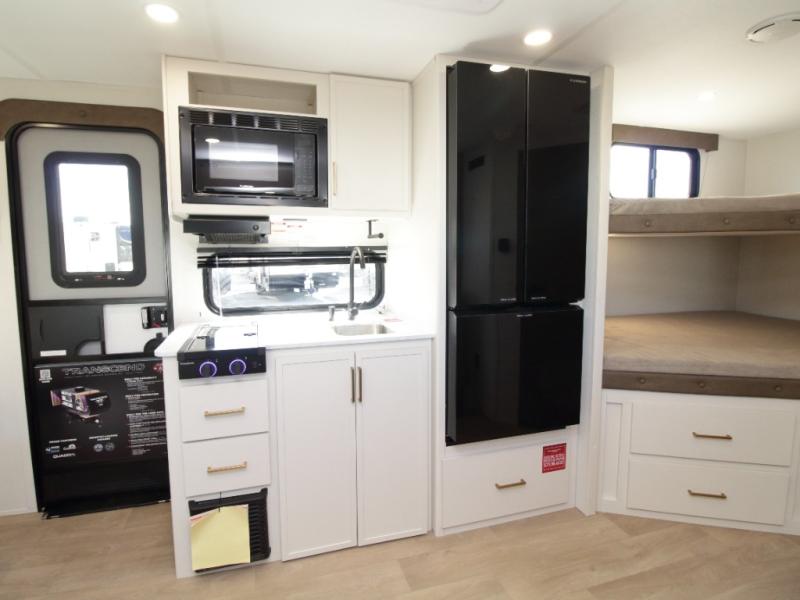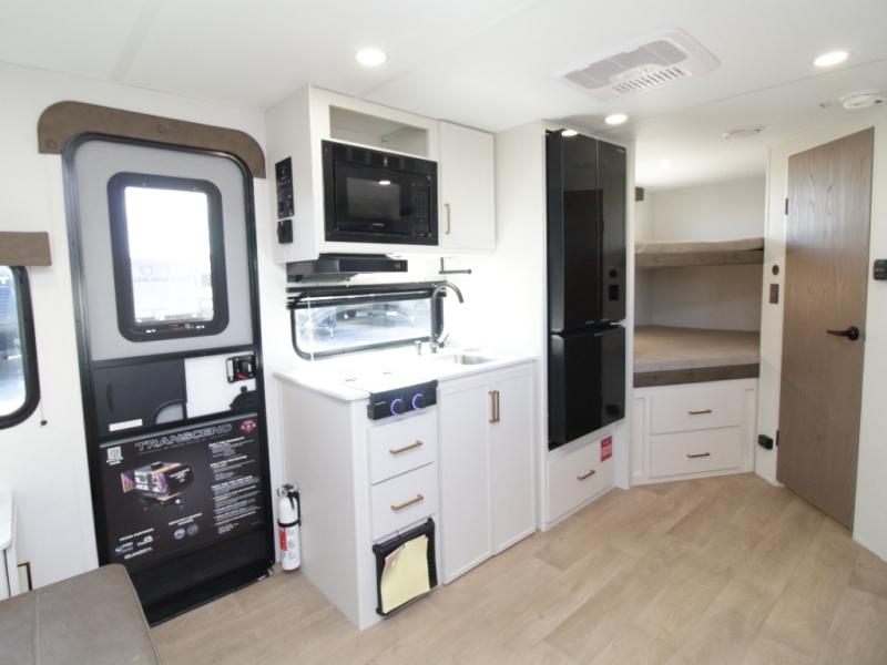 Bunkhouse design, modern kitchen, convertible dinette ample storage and more comes with this new 2026 Grand Design Transcend One 161BH