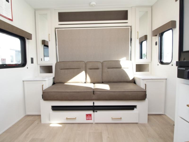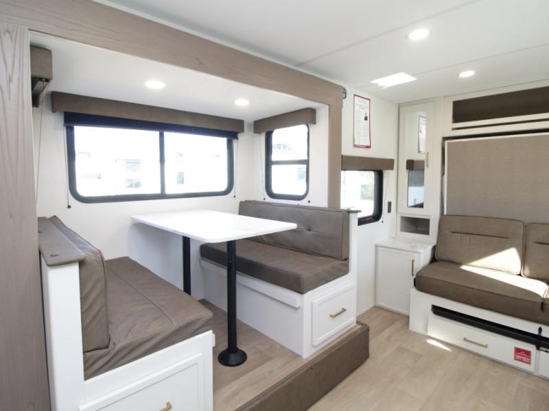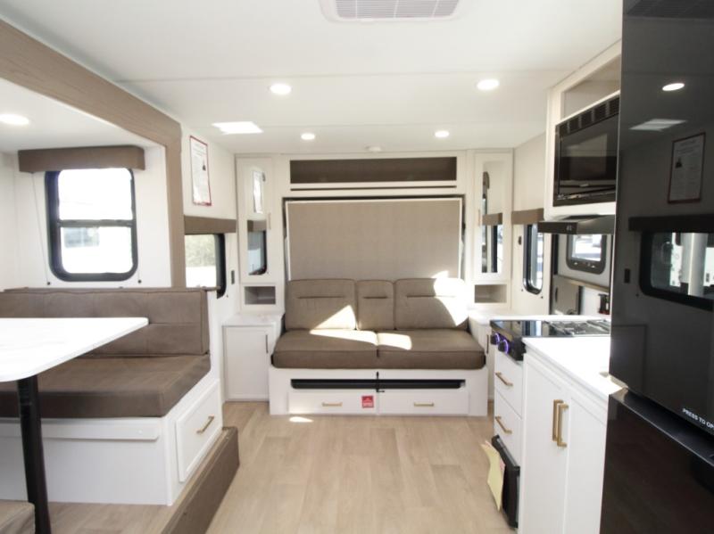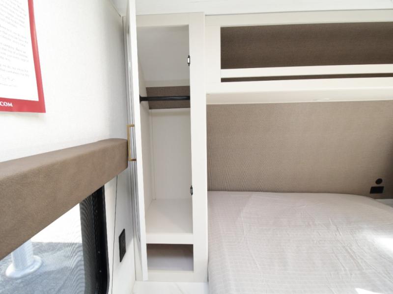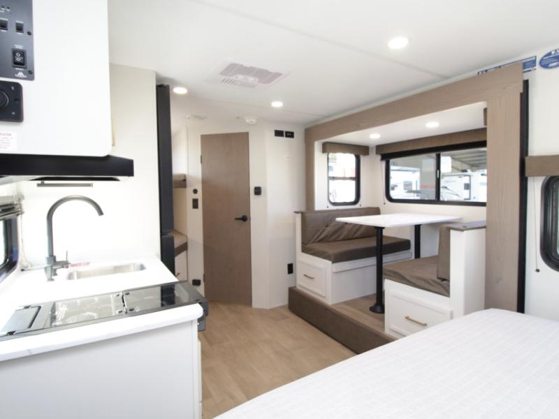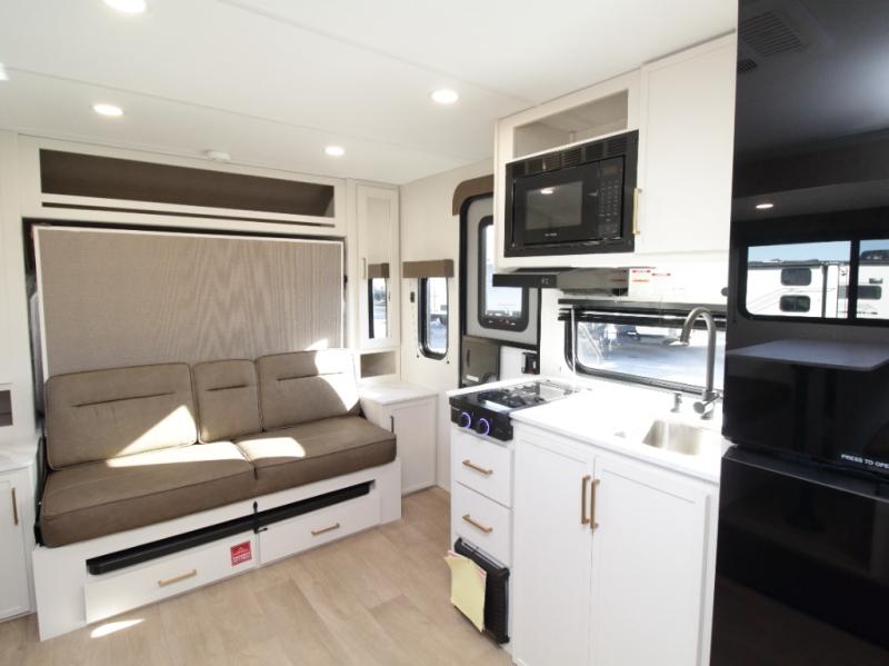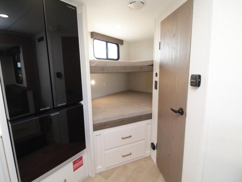 Bunkhouse design, modern kitchen, convertible dinette ample storage and more comes with this new 2026 Grand Design Transcend One 161BH