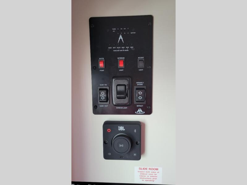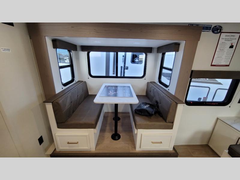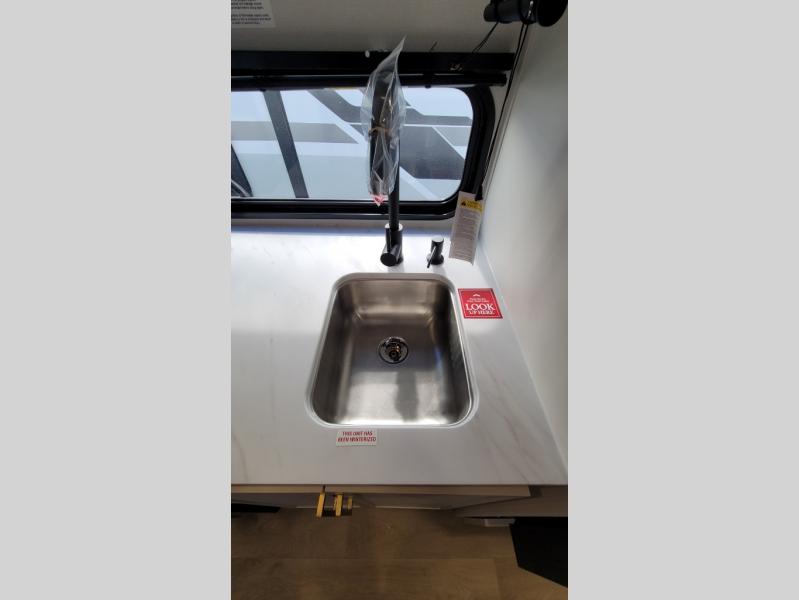 With any Transcend One travel trailer by Grand Design, you will enjoy lightweight towing thanks to their single-axle. There are many interior comforts to make camping easier than ever, such as recessed lighting, residential countertops, and a 6' 6" interior height. Each model is constructed with a heated and enclosed underbelly with suspended tanks, a moisture barrier floor enclosure, and Thermofoil over the roof and front cap for added protection. And a JBL sound system will let you listen to tunes as you visit under the power awning with a Fusion light!
