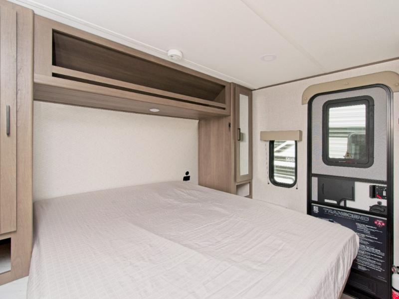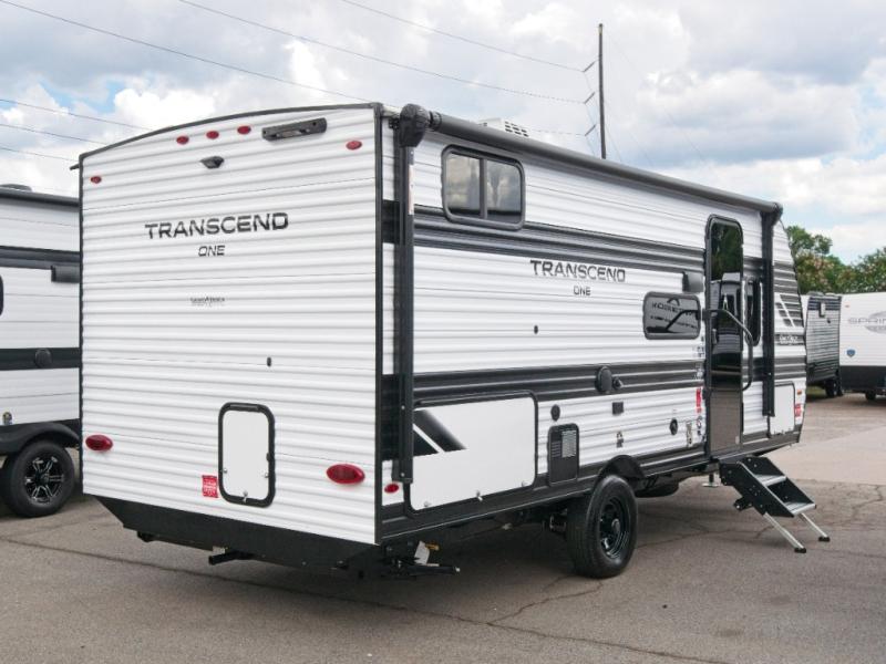 With any Transcend One travel trailer by Grand Design, you will enjoy lightweight towing thanks to their single-axle. There are many interior comforts to make camping easier than ever, such as recessed lighting, residential countertops, and a 6' 6" interior height. Each model is constructed with a heated and enclosed underbelly with suspended tanks, a moisture barrier floor enclosure, and Thermofoil over the roof and front cap for added protection. And a JBL sound system will let you listen to tunes as you visit under the power awning with a Fusion light!