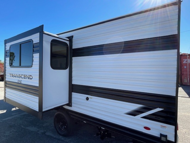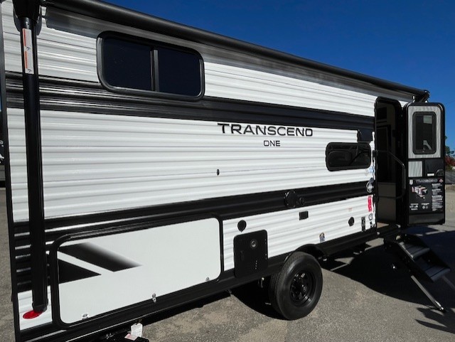 With any Transcend One travel trailer by Grand Design, you will enjoy lightweight towing thanks to their single-axle. There are many interior comforts to make camping easier than ever, such as recessed lighting, residential countertops, and a 6' 6" interior height. Each model is constructed with a heated and enclosed underbelly with suspended tanks, a moisture barrier floor enclosure, and Thermofoil over the roof and front cap for added protection. And a JBL sound system will let you listen to tunes as you visit under the power awning with a Fusion light!