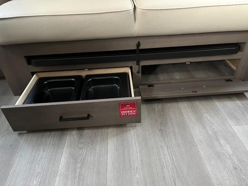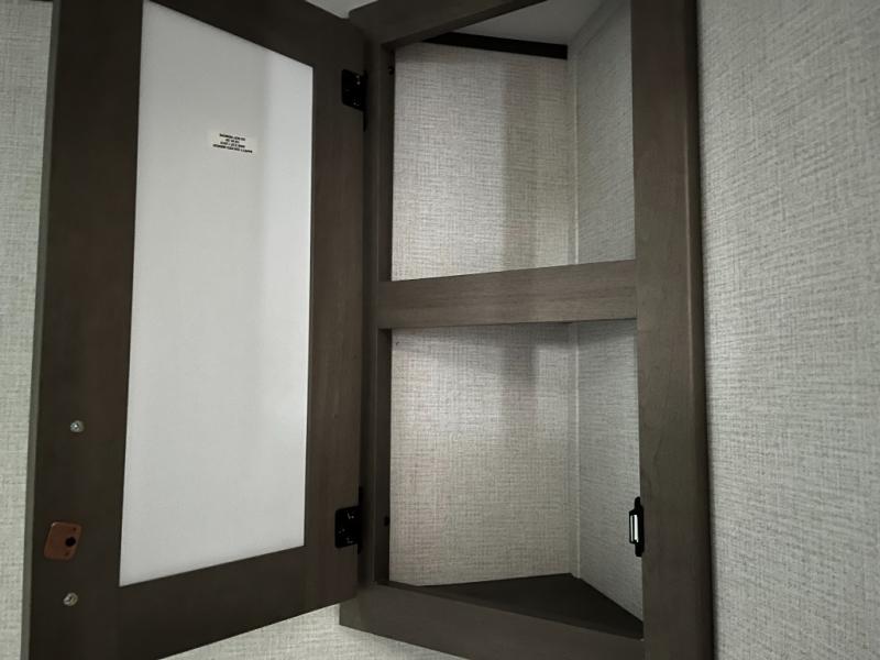The kitchen in the Transcend One 161BH is designed for real-world convenience. Equipped with a cooktop, microwave, and refrigerator, it allows you to easily prepare everything from quick breakfasts to hearty dinners. Efficient countertop space and thoughtful storage cabinets help keep cookware and pantry items organized, so you can focus on adventure, not clutter.