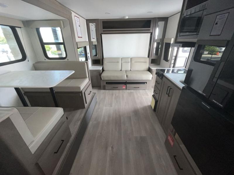 Step inside the Transcend One 161BH and enjoy a bright, welcoming interior that maximizes space and natural light. Large panoramic windows bring the outdoors in, creating an open and airy feel that enhances your camping experience. The multifunctional dinette acts as a cozy spot for meals, board games, planning the day’s adventures, or converting into extra sleeping space when needed.